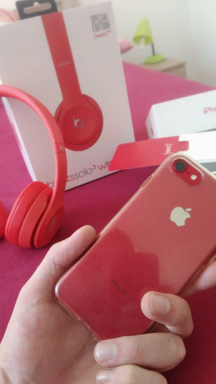 Ahoj, rád bych nabídl k prodeji měsíc starý iPhone 7 128gb red + Beats Solo3 red edition. Telefon od začátku v pouzdru a pod sklem. Sluchátka použita cca 3x. Ke všemu je doklad z českých obchodů. Záruka 23 měsíců. Cena za telefon + sluchátka je 21 tisíc. Veškeré příslušenství součástí + kupón na apple music na 3 měsíce zdarma. Možno i samostatně. Nebráním se nabídkám. Prosím buď email nebo sms. Předání možné v Liberci, po domluvě možno zaslat. Důvod prodeje, výhra iPhonu 7 plus v souteži, barva zlatá proto i sluchátka. Omlouvám se za kvalitu fotografií, foceno levným Androidem.