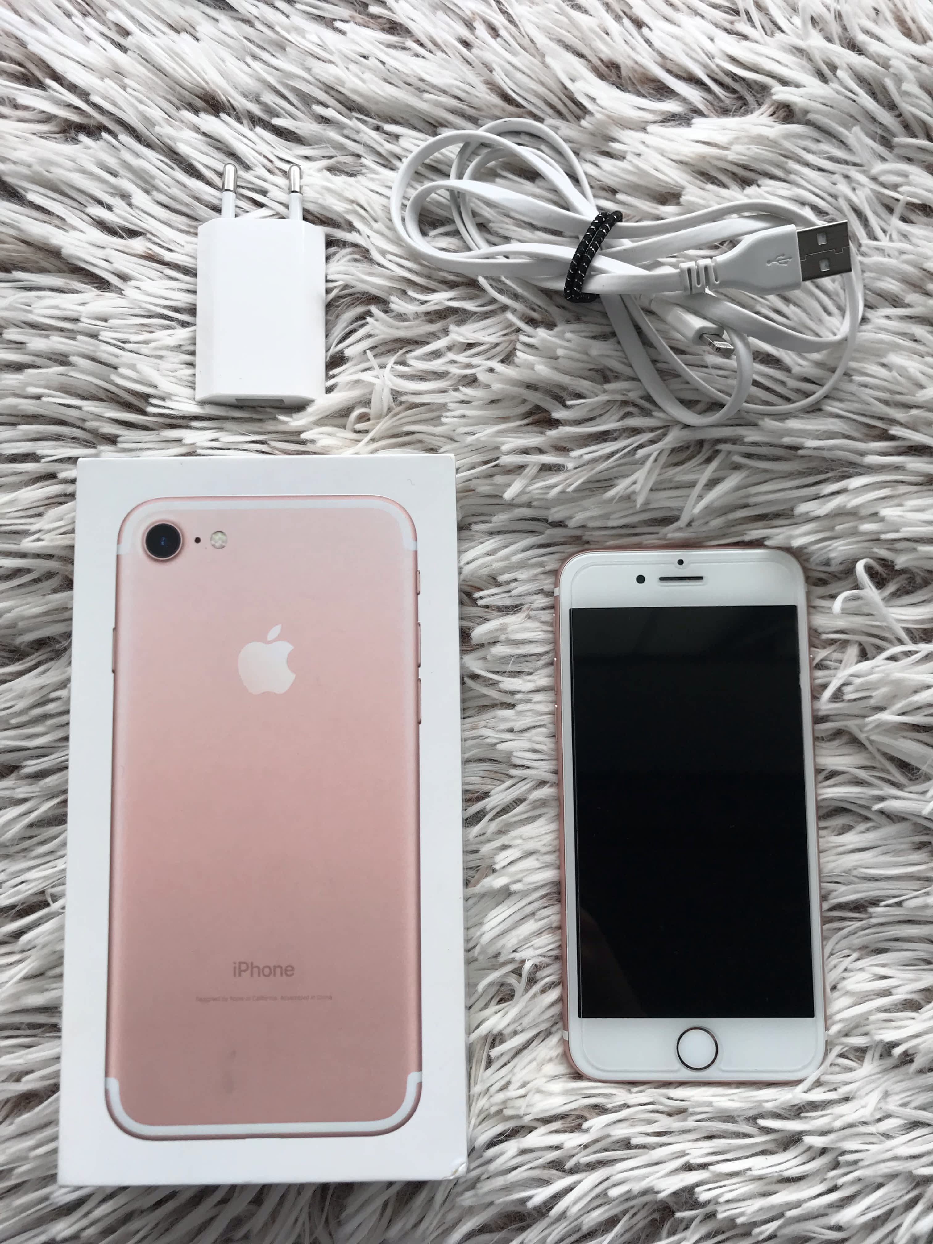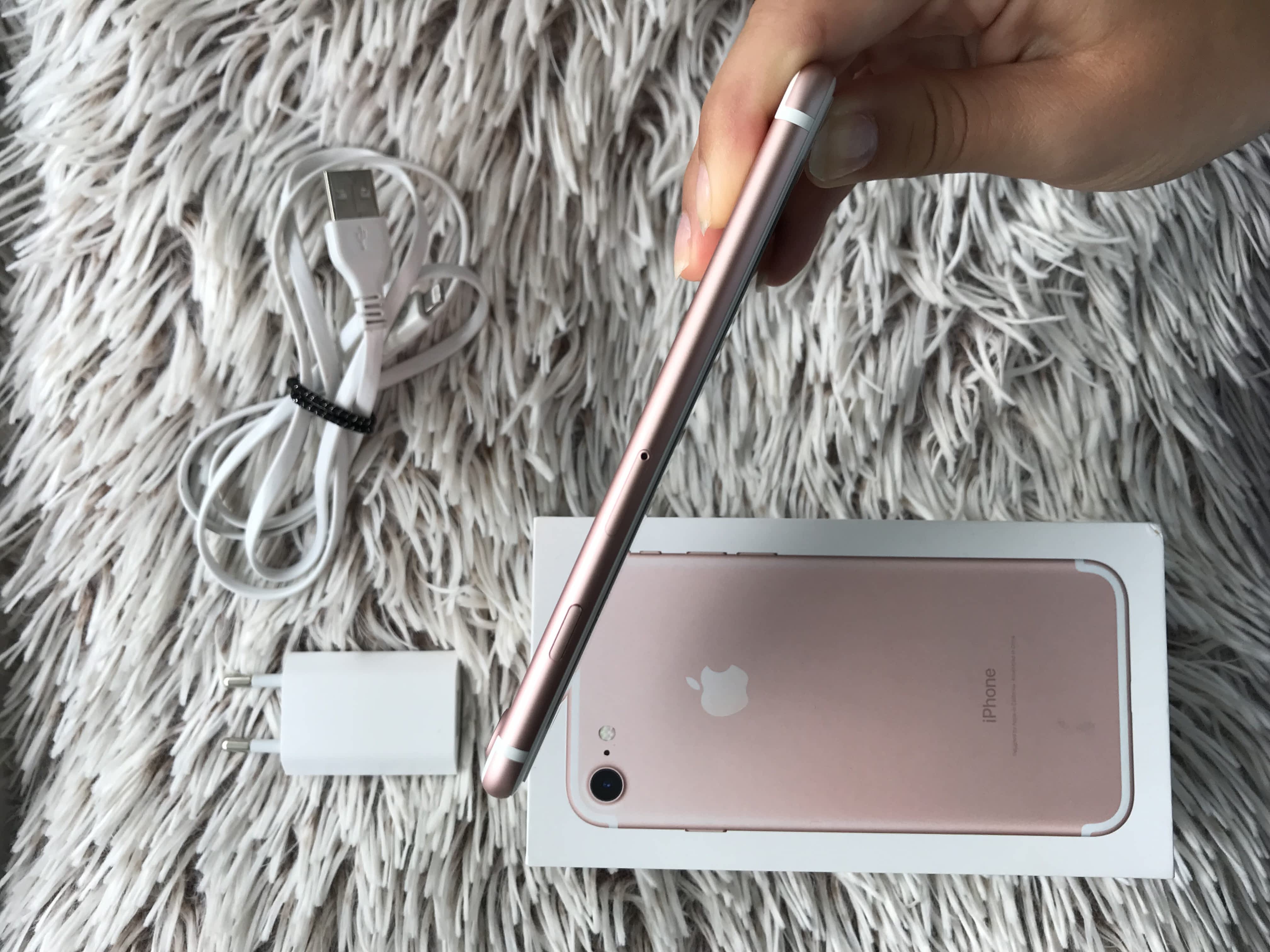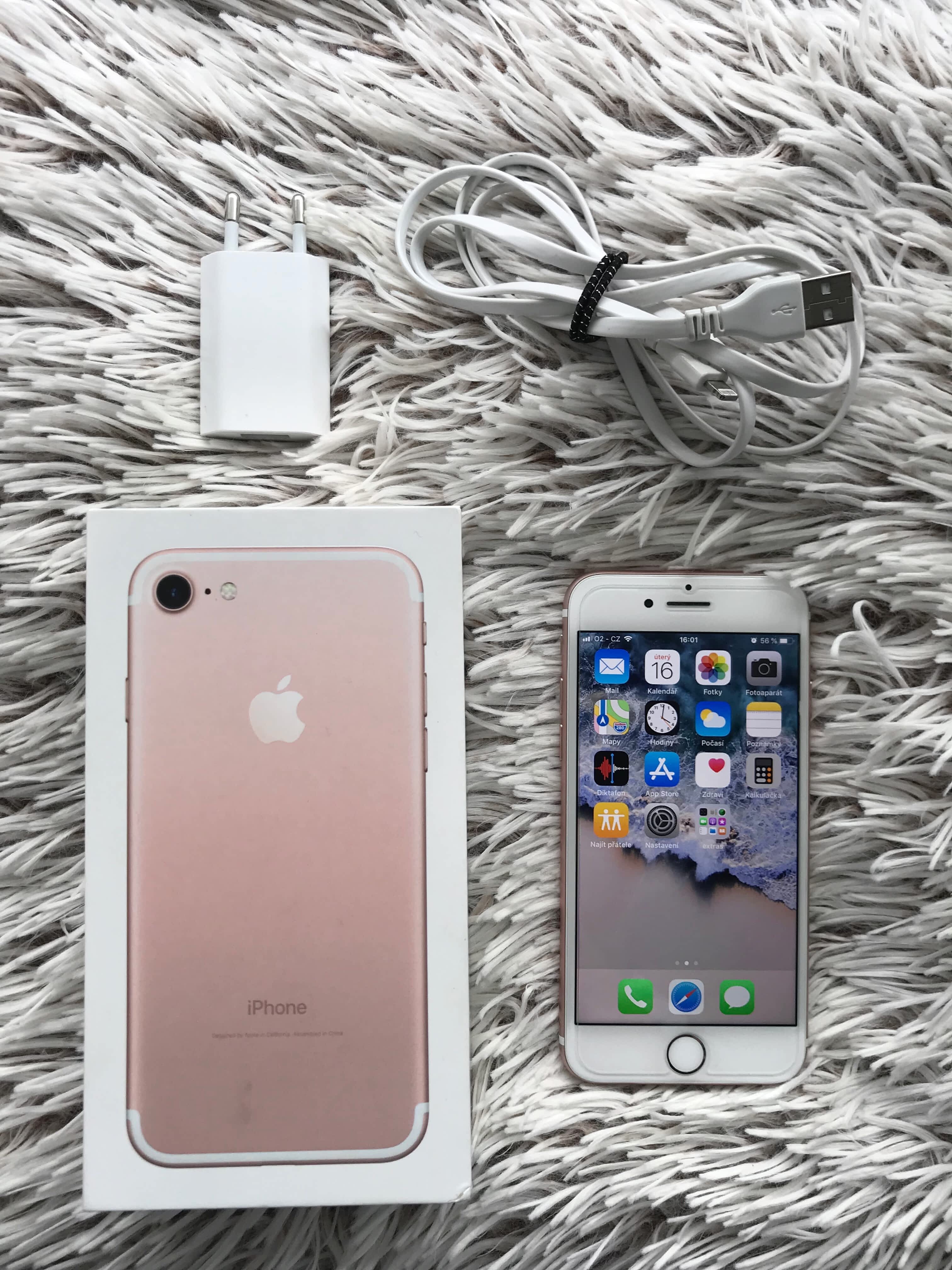 Prodám iPhone 7 32g v Rose Gold barvě. Vše 100% funkční. Koupen 1. 02. 2017 v ElectroWorld. Top stav po celou dobu nošen v krytu a ochranném skle, tudíž vypadá téměř jako nový viz. foto. Koordinace baterie je 85%. Není blokovaný na iCloud ani operátora.