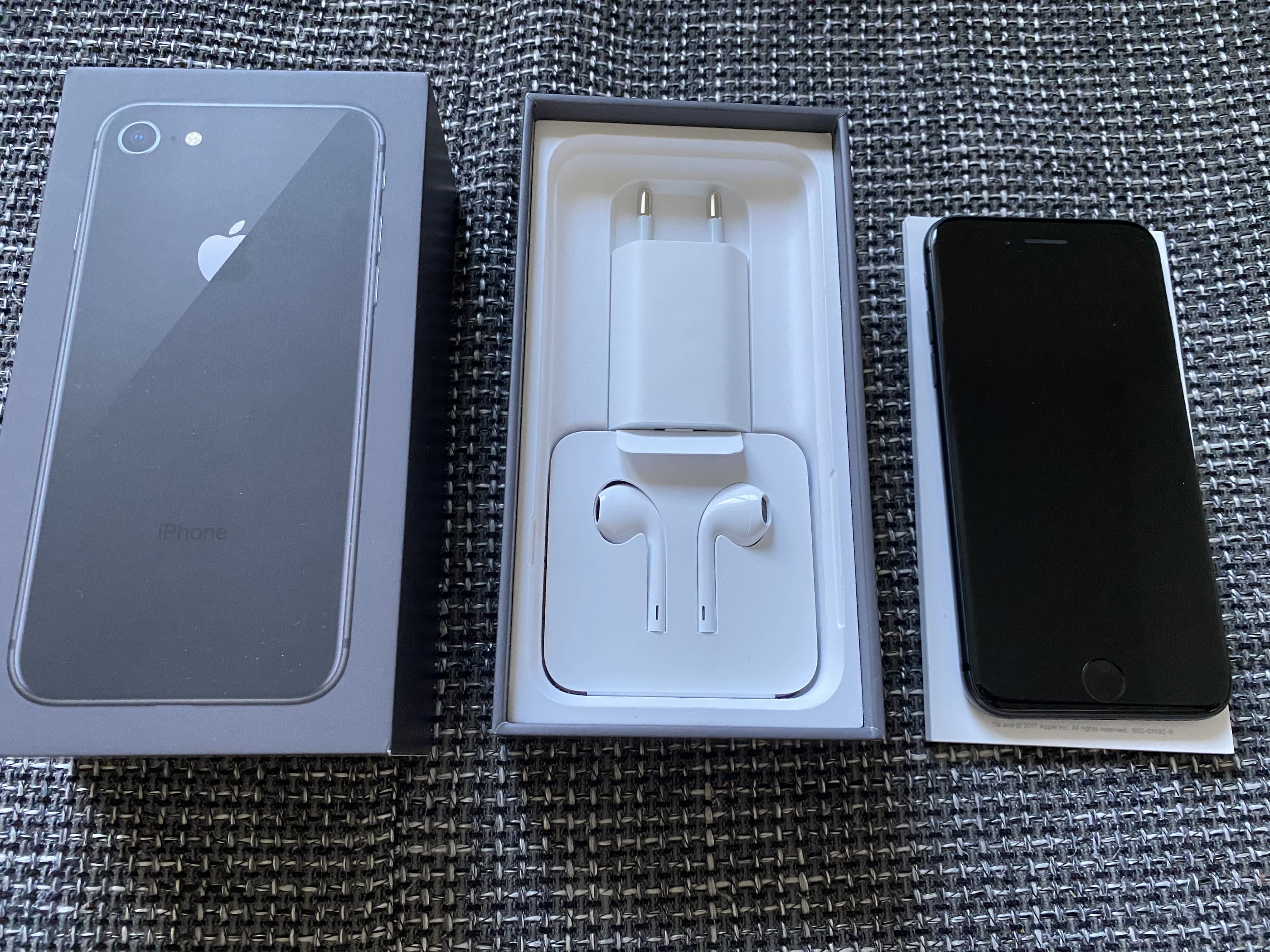 Prodám iphone 8 64 Gb používán bez obalu. Má na sobě pár šrámů nemají vliv na funkčnost 100 % funkční. Včetně Krabičky a nového adaptéru sluchátek z iphone 11.