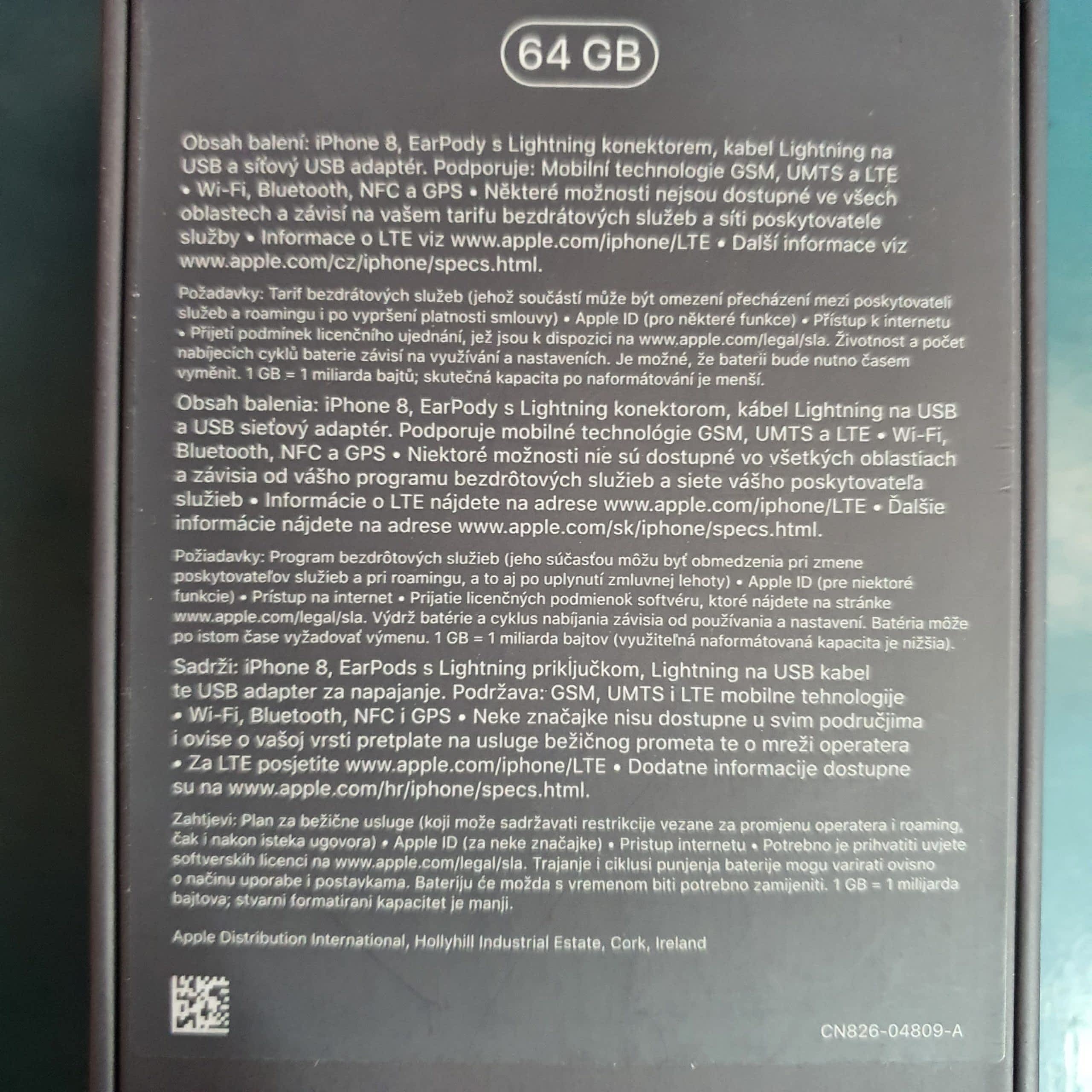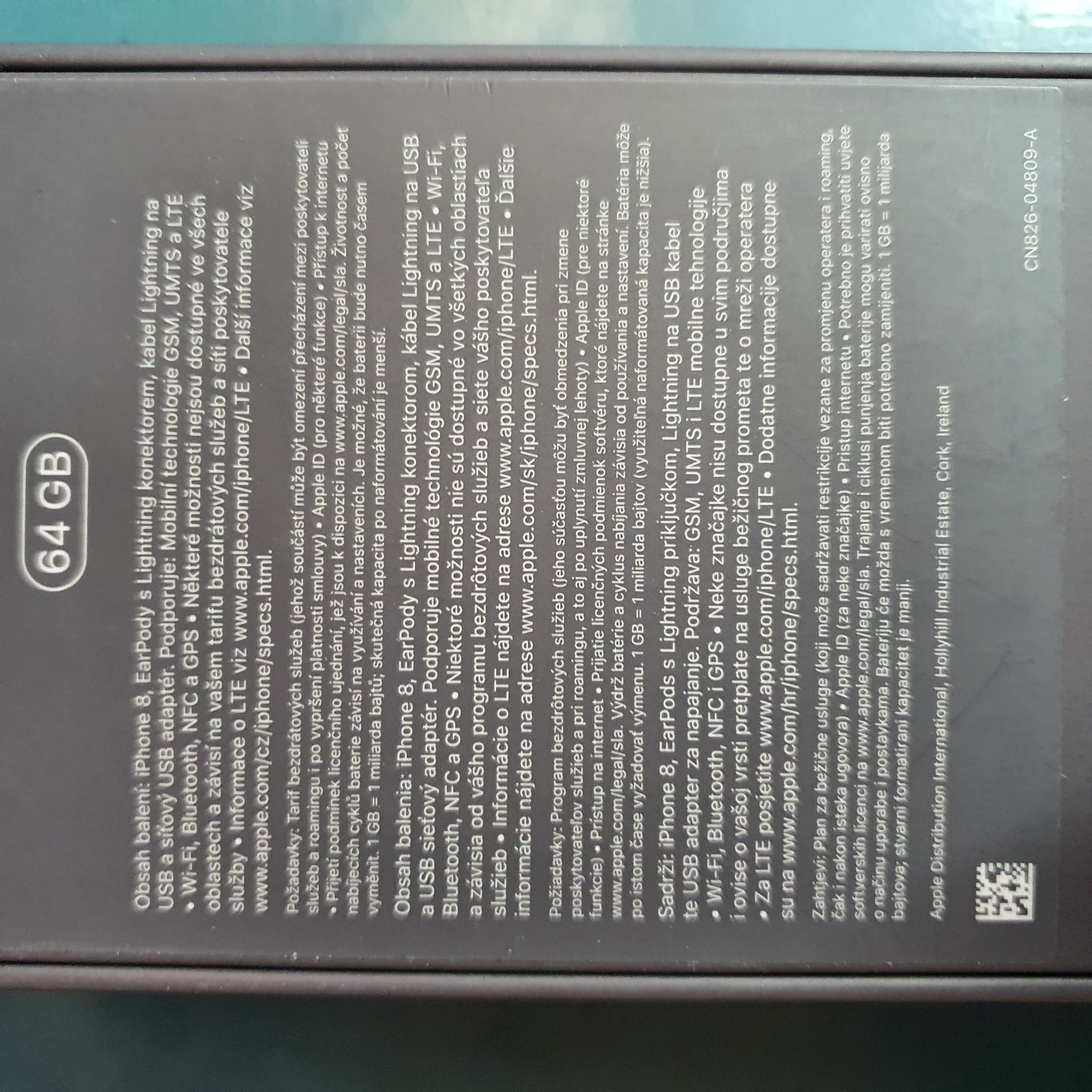 iPhone 8 64G černý, originální příslušenství v krabičce. Stáří 2 roky, mírné opotřebení. Bez mechanického poškození, plně funkční.