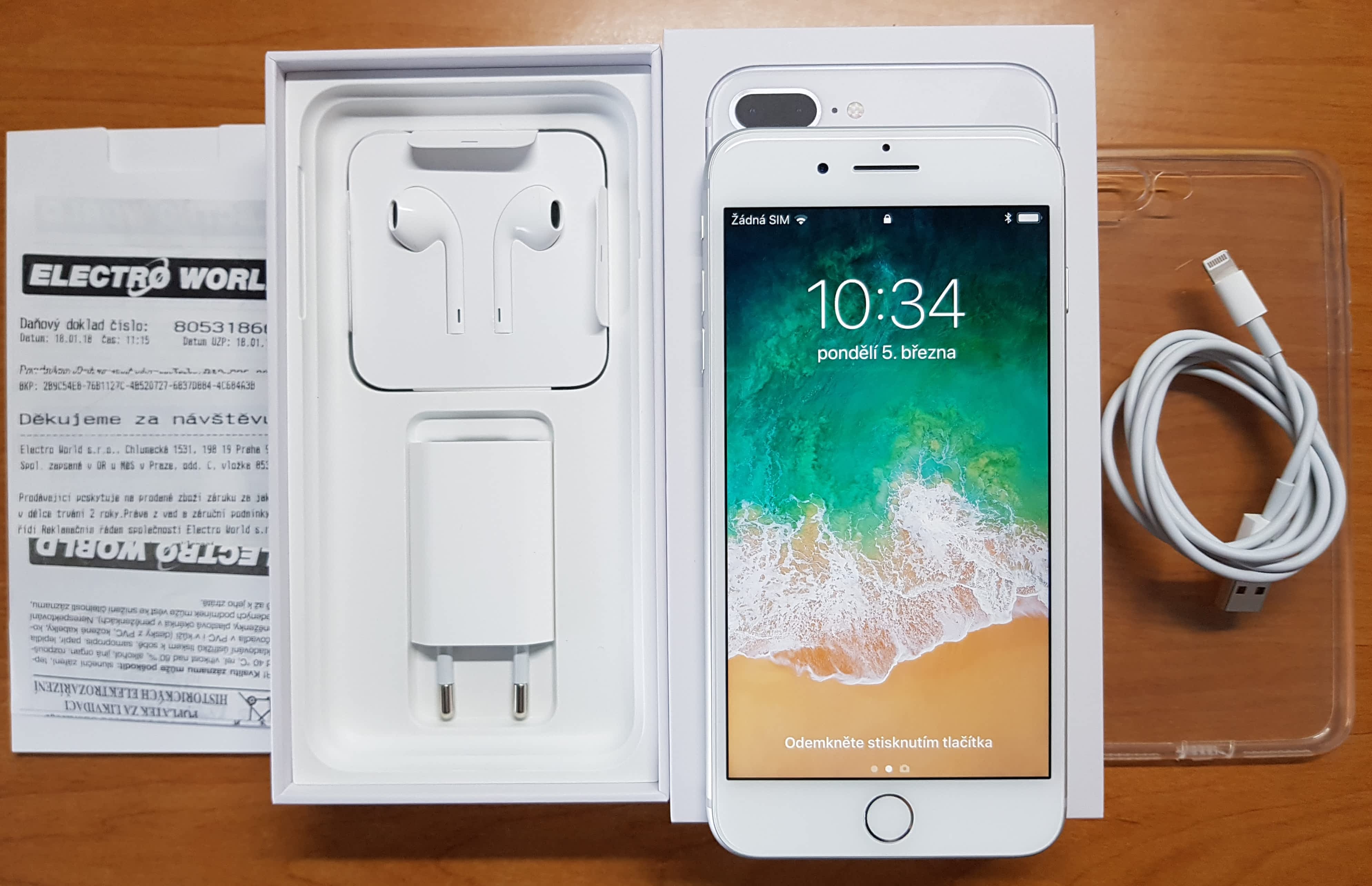 Prodám iPhone 8 plus 64Gb bílý ve skvělém stavu s veškerým příslušenstvím a zárukou u ElektroWorldu.