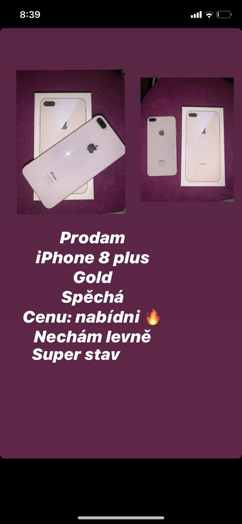 Prodám IPhone 8 plus, 64 gb, gold, stav 10/10