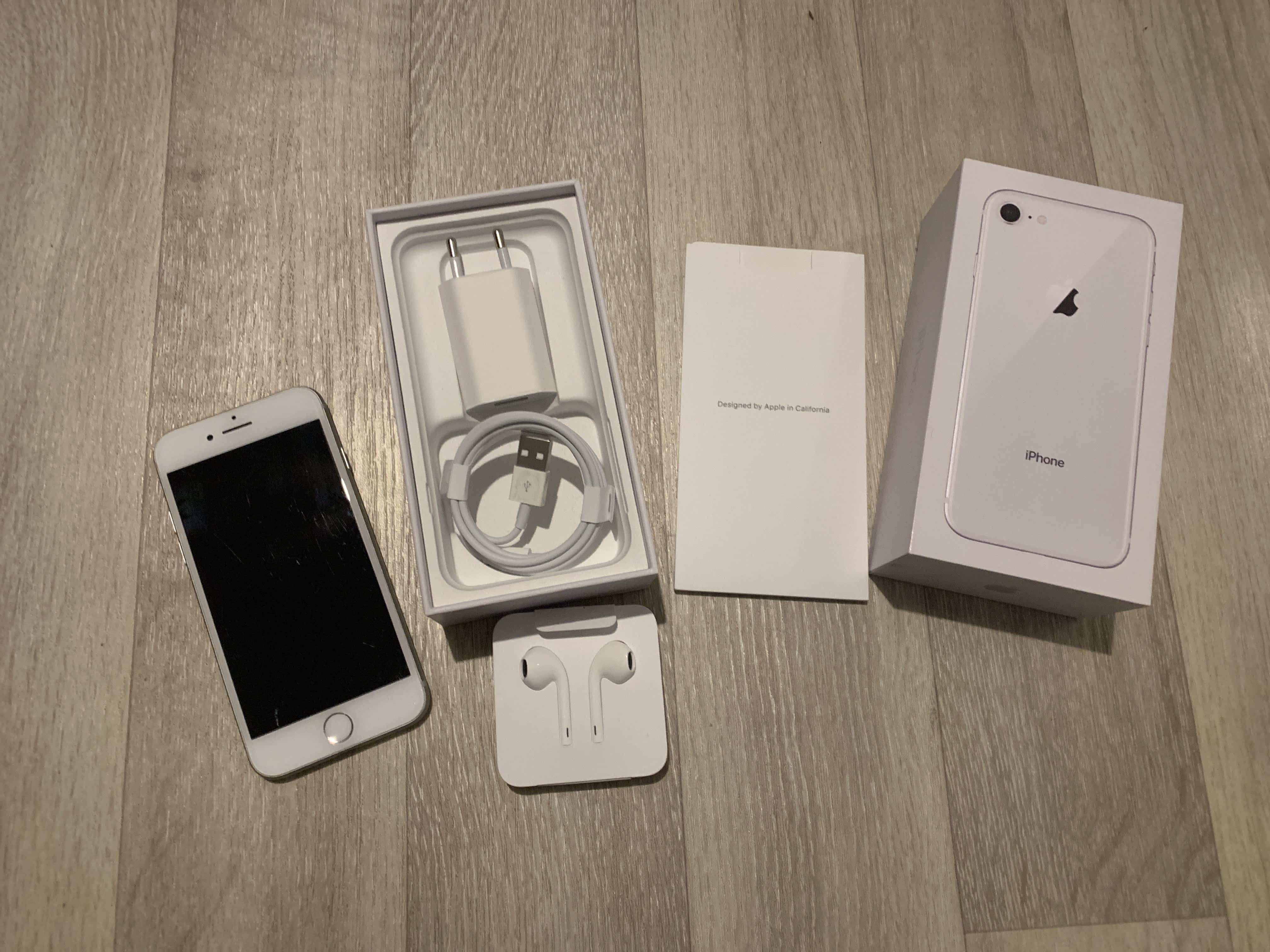 Predám iPhone 8 – biely s 64 GB pamäťou s kompletnou výbavou – originál nabíjačka+sluchátka (nerozbalené, v pôvodnom balení).