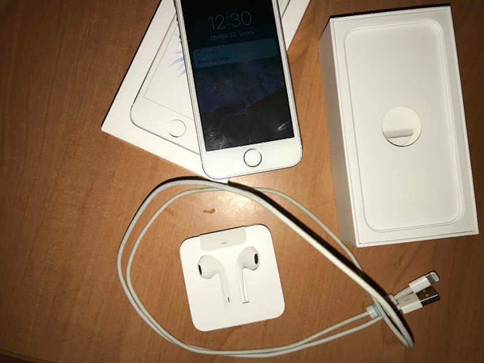 Prodám iPhone SE ve stříbrné barvě, paměť 16 GB. Vzhledově téměř bez vad, jediný škrábanec na spodní straně v pravém dolním rohu, celou dobu nošen v obalech a s tvrzeným sklem (na fotkách je se sklem, displej je bez jediného škrábance). Nefunguje touchID, do konce května 2018 v záruce (bohužel touchID reklamaci neuznali, ikdyž z mé strany nedošlo k žádnému pochybení). Baterie vydrží nabitá až 2 dny, při stálém používání 1 den. K telefonu přidám originální krabičku, originální sluchátka, originální kabel USB + všechny obaly (samozřejmě použité) + sklo, které je již nalepeno. Při rychlém jednání možná sleva.