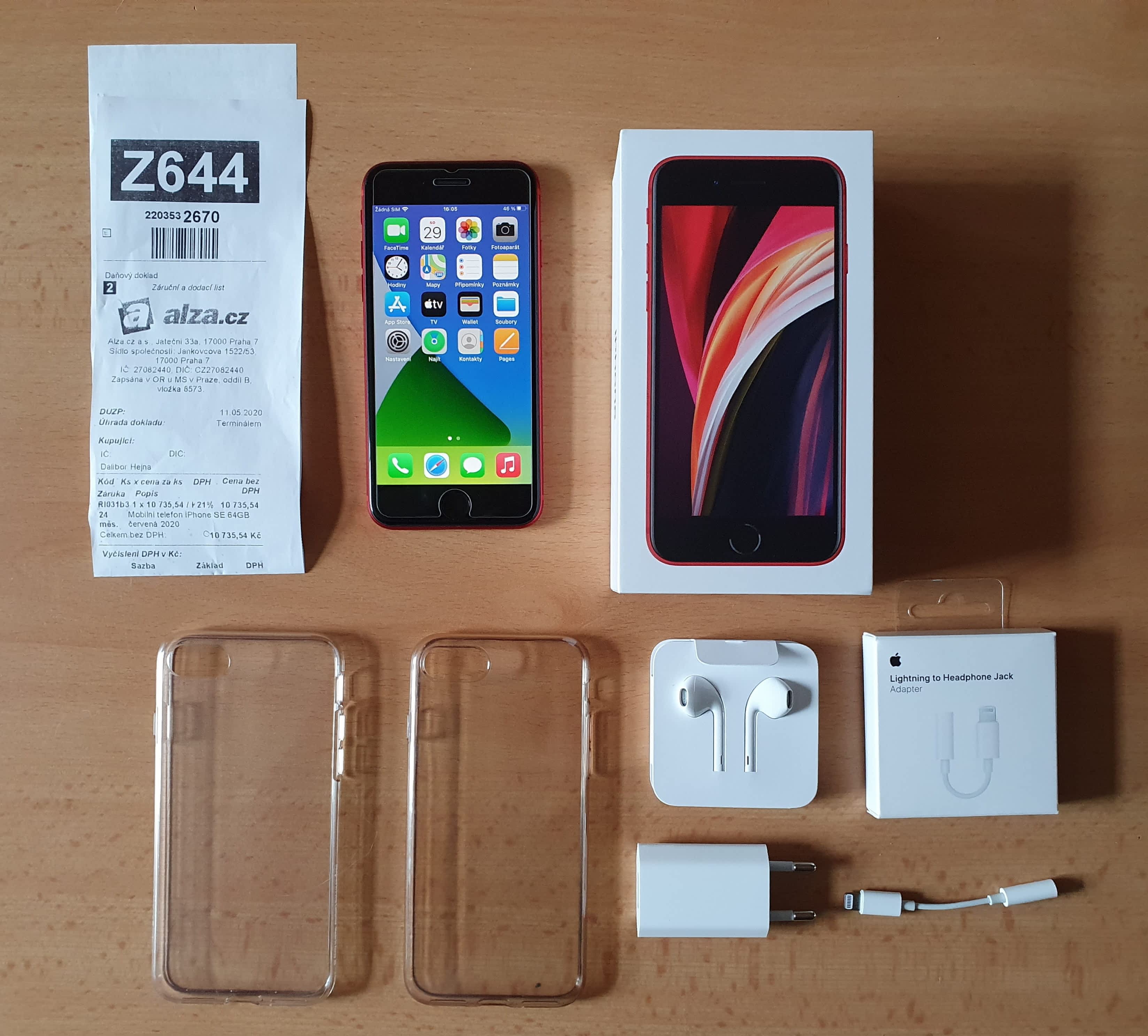 Prodám zánovní telefon iPhone SE 64GB,červený, jako nový,bez známek používání, zakoupený v Alze,nošen vždy s pouzdrem a ochranným sklem, 100% stav, s kompletním příslušenstvím, krabičkou,dokladem o koupi, navíc zdarma 2 gelová pouzdra a redukce na sluchátka Jack
