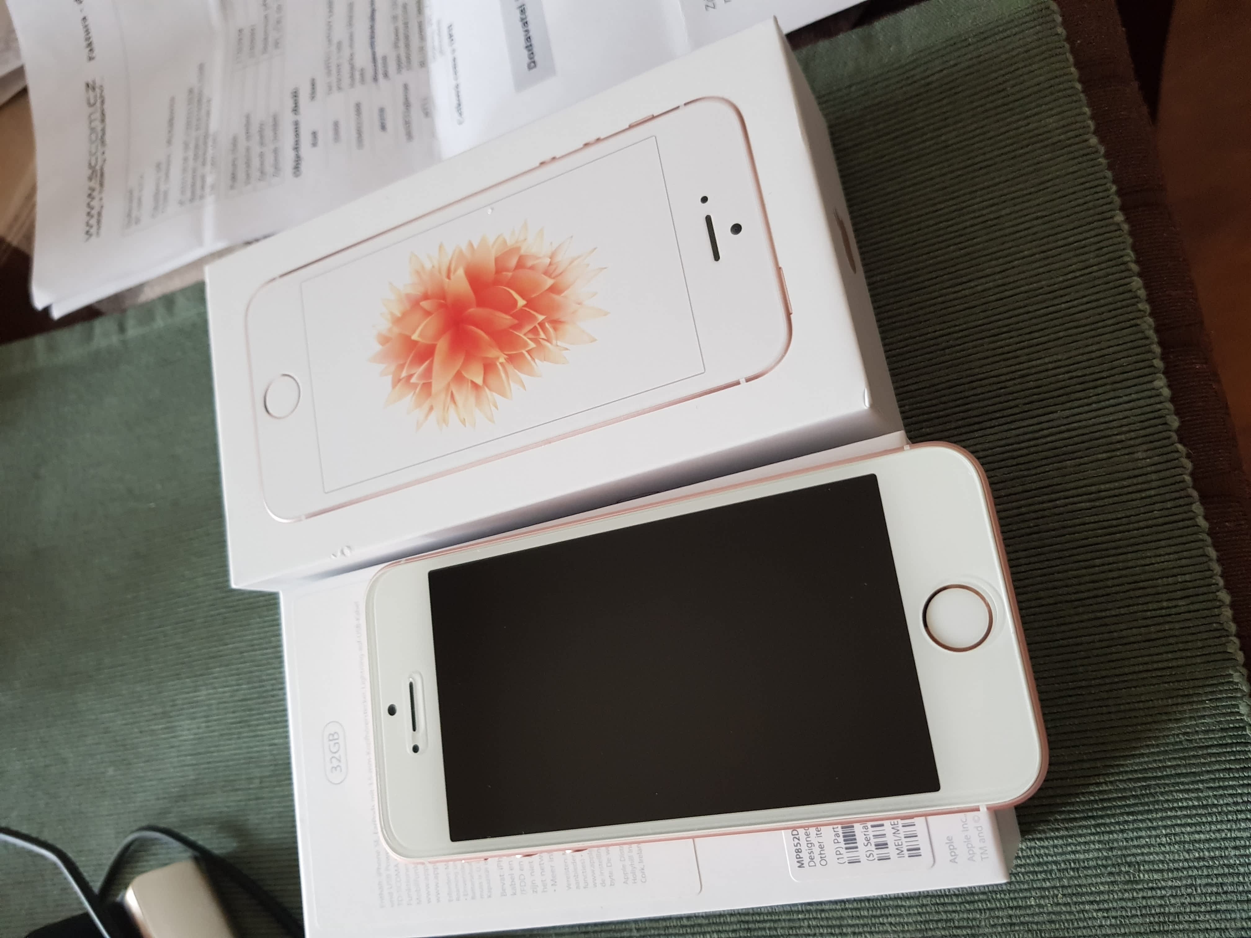 Prodám čtyři měsíce koupený a sporadicky užívaný iphone SE, 32 GB. Růžově zlatý. Stav jako nový!