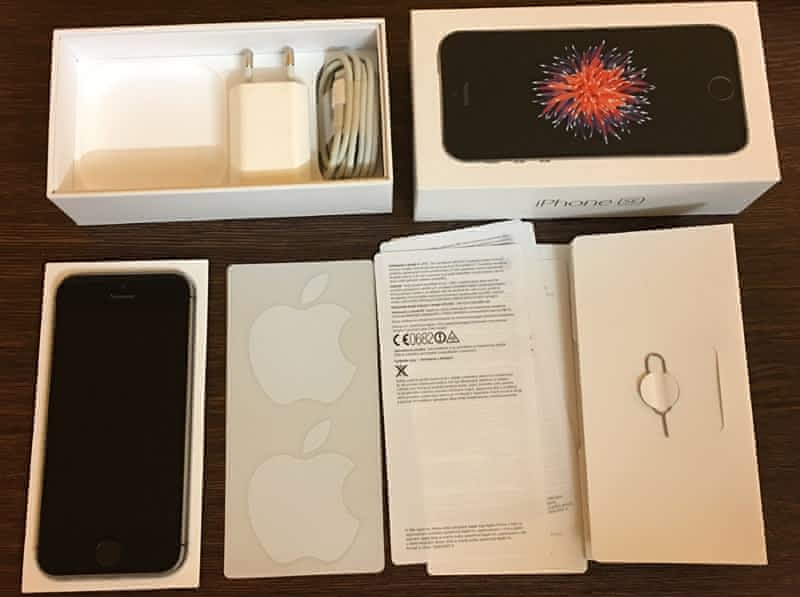 Prodám iPhone SE 16 GB v barevné variantě Space Grey. Je kupován v červnu 2016, stále je tedy v záruce cca 3 měsíce (byl kupován u Vodafone na firmu, proto pouze 1-letá mezinárodní záruka – viz printscreen v galerii z ověření záruky přímo na Apple.com jako důkaz). Součástí prodeje krabička, USB datový kabel, originální nabíječka, manuály, samolepky Apple. Sluchátka jsou použitá, proto z hygienických důvodu nejsou součástí prodeje. Telefon nese znaky používání, pár ťukanců na rámu, nějaké vlasečnicové škrábanečky na skle displeje, nic vážného. iPhone je již odhlášen ze služeb Apple (iCloud, Find My Phone) a smazán do továrního nastavení. Není blokován na žádného operátora.