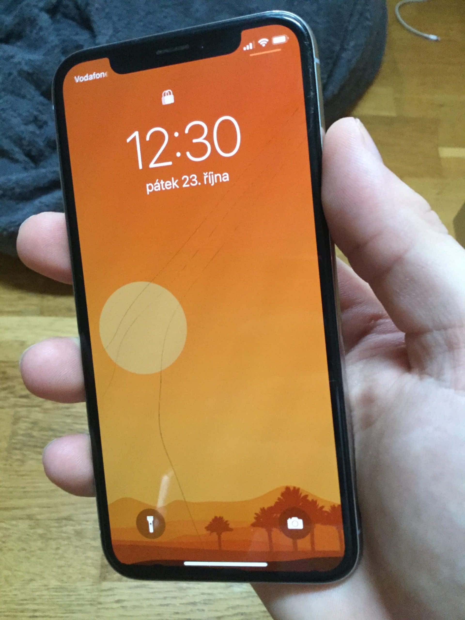 Má vlásečnicovou prasklinu, ničemu to nevadí. Používal jsem ho takhle přes půl roku a klidně bych ho používal dál ale přišel čas na koupi nového modelu. Přidám několik pouzder.