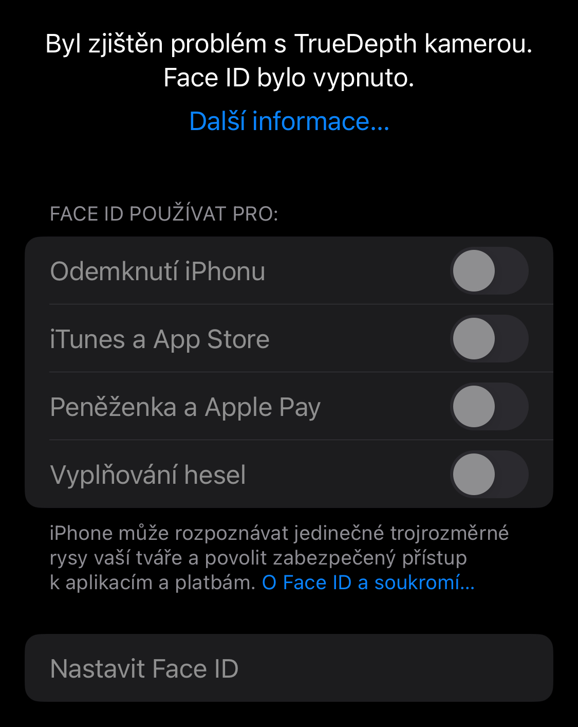 Opravené face id. Displej bez škrábanců, záda taky bez, telefon je pořád nošen v pouzdře a s ochranným sklem. Na bokách běžné oděrky. Kondice baterie 75%.
