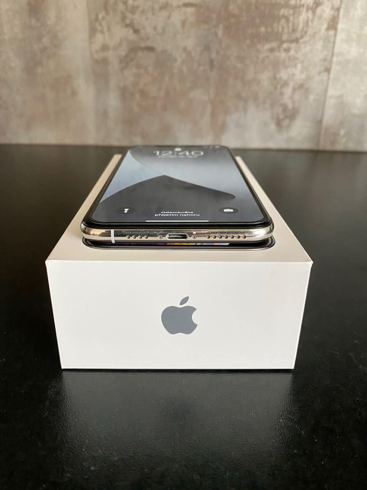Prodám Apple iPhone XS Max 64GB silver kompletní balení vč.krabice, nová nikdy nepoužitá nabíječka , iPhone XS Max je plně funkční, nepoškrábaný, nikdy neservisován, iCloud odhlášen. Nošen pouze v ochraném krytu a s nalepeným tvrzeným sklem. Inzerát platný do smazání.