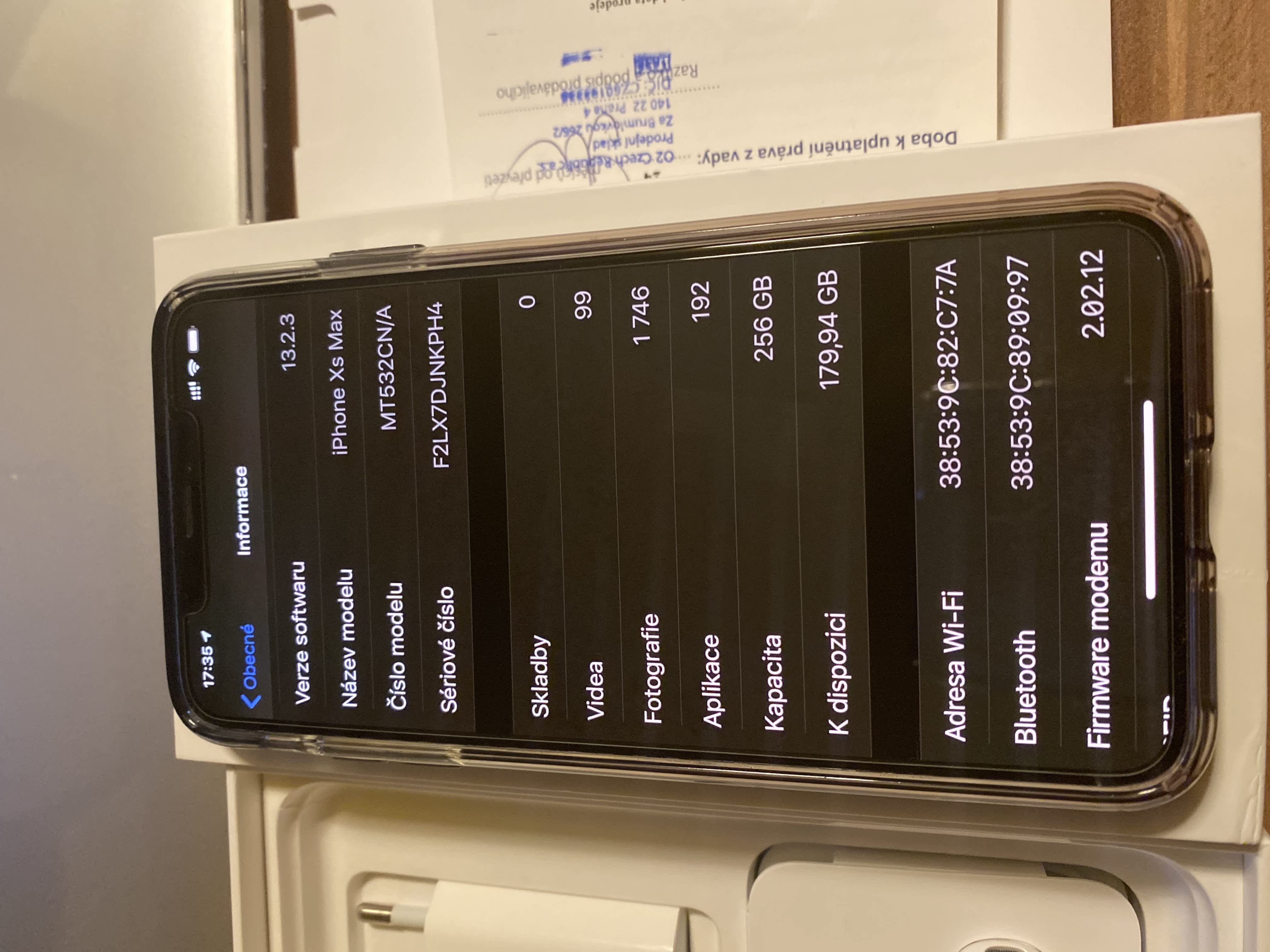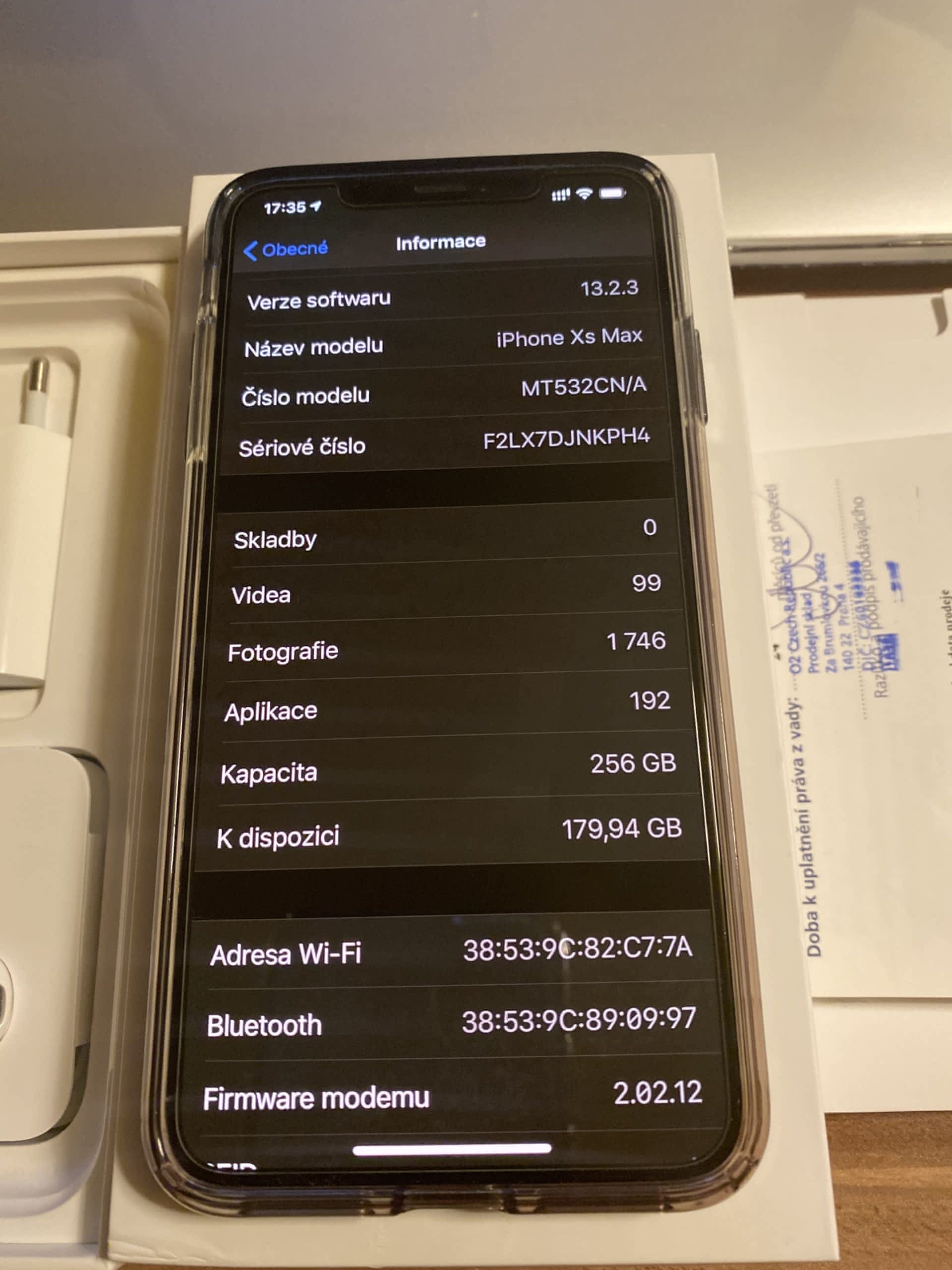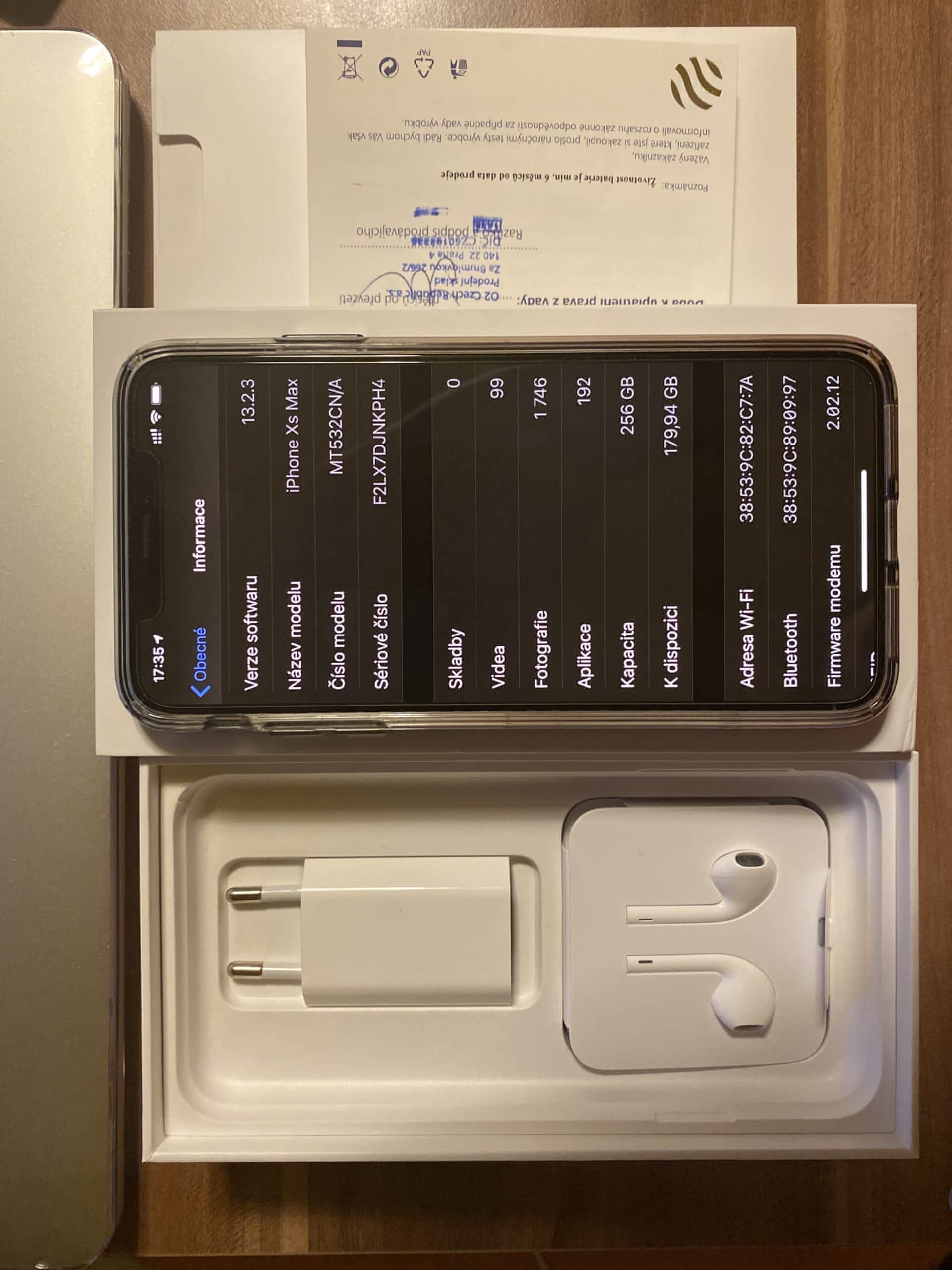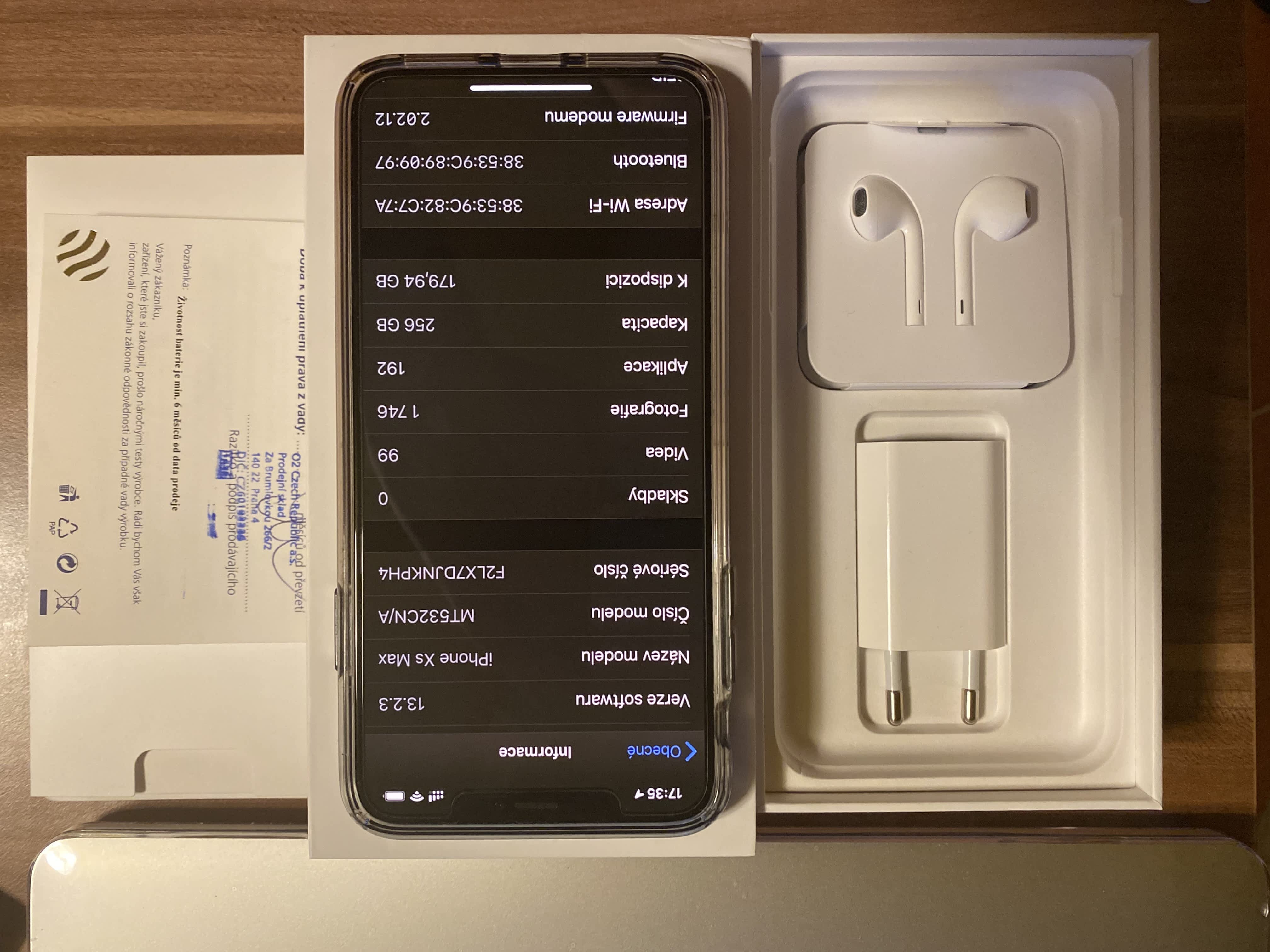 Nepoužitá sluchátka, nabíjecí kabel i adaptér