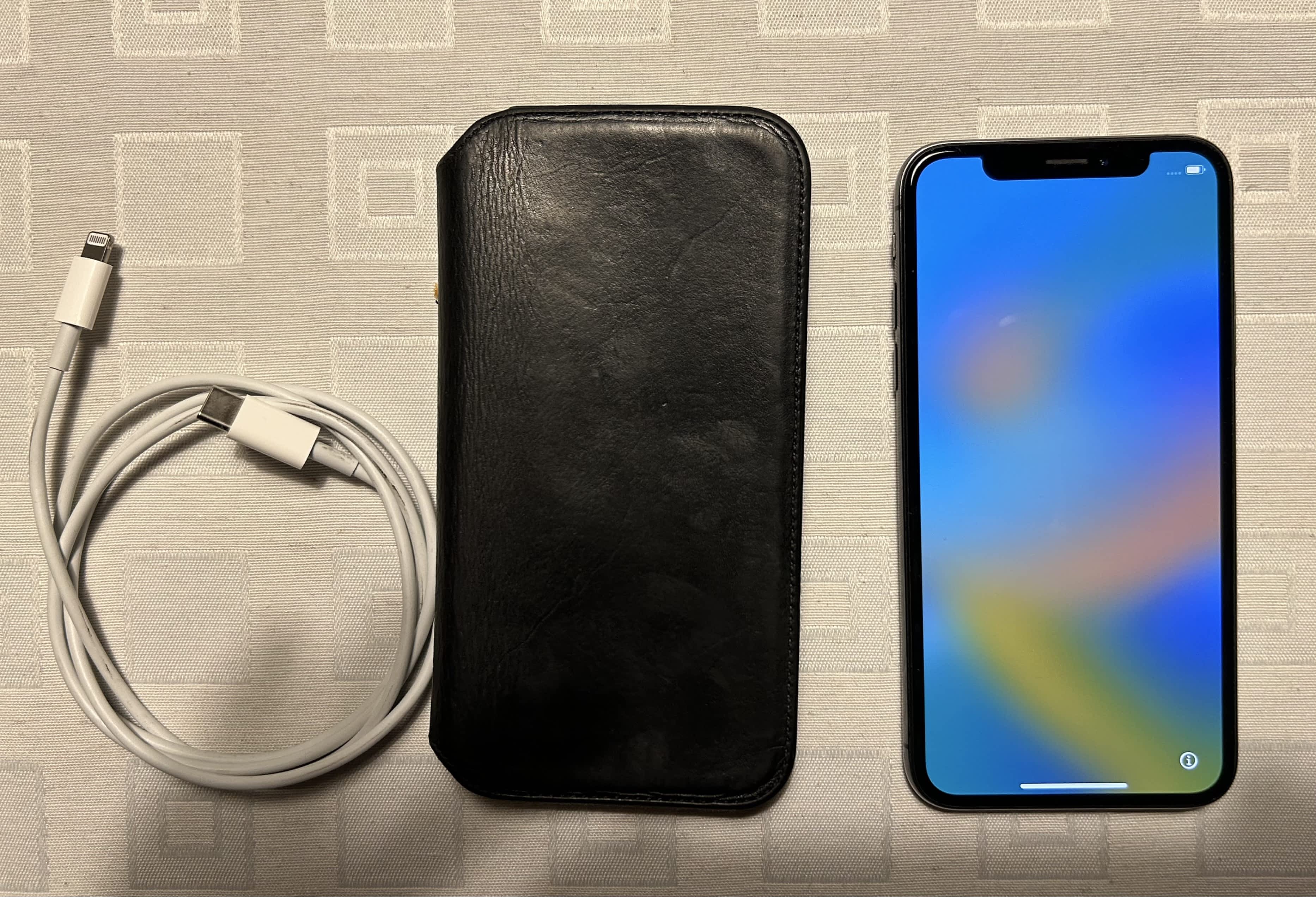 iPhone XS space gray 64 Gb, plně funkční, kondice baterie 80%, nošen v oboustranném koženém pouzdru, které dávám k dispozici, zadní strana intaktní, přední strana má drobné známky použití.