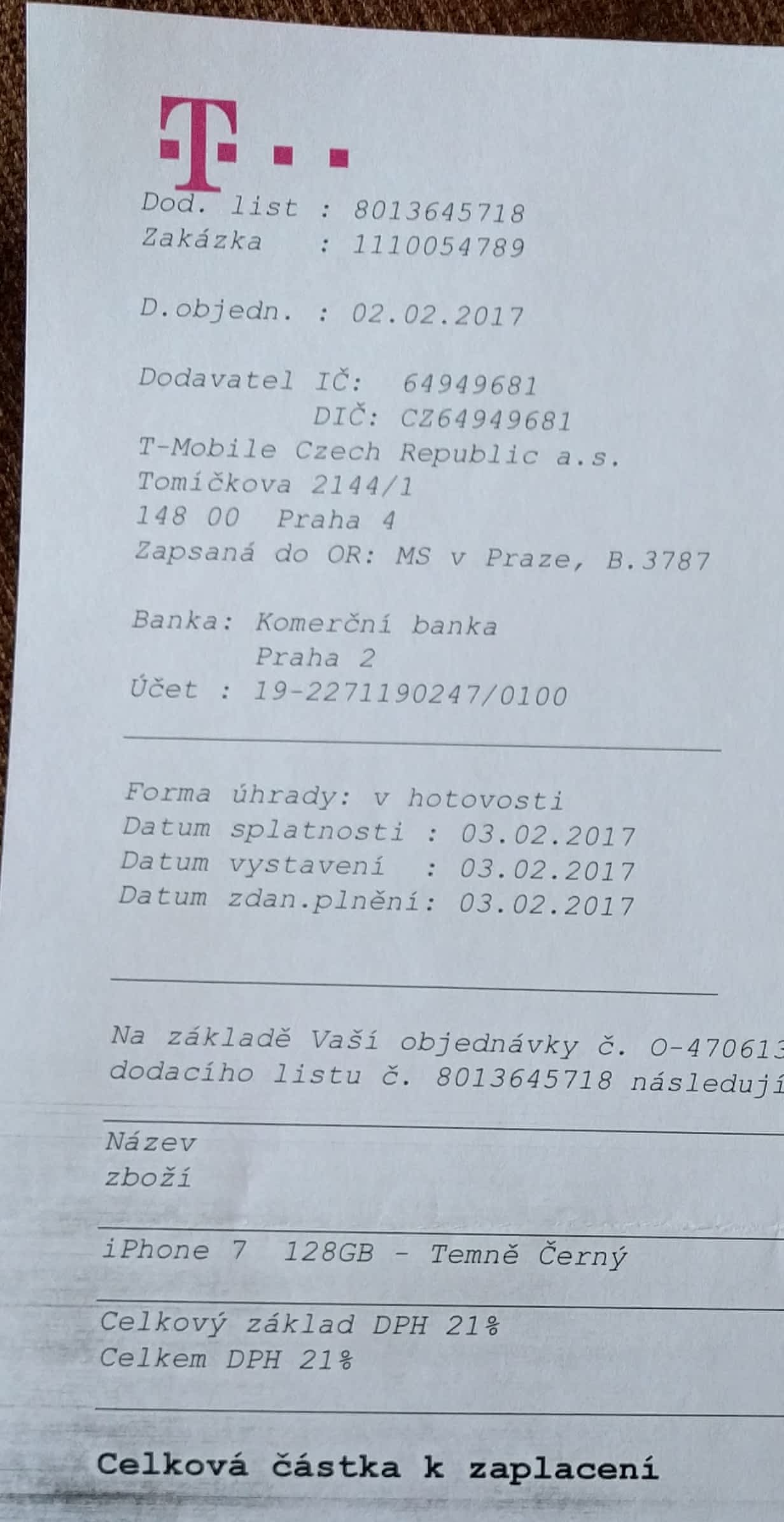 Prodám iPhone7 v záruce, 128GB, temně černý. Koupeno u Tmobile na firmu. Telefon je nepoužitý – byl vyměněný za nový kus v rámci reklamace. Preferuji osobní předání Praha 4. Součástí je samozřejmě originál krabice a příslušenství (nabíječka, sluchátka, atd.)
