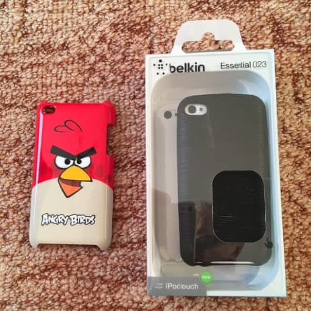 V ceně je iPod Touch 4 generace, nabíjecí kabel, Personal audio docking system SONY RDP-M7iP s dálkovým ovládáním a síťovým adaptérem, 2 silikonová pouzdra Belkin a jedno pevné pouzdro Angry Birds