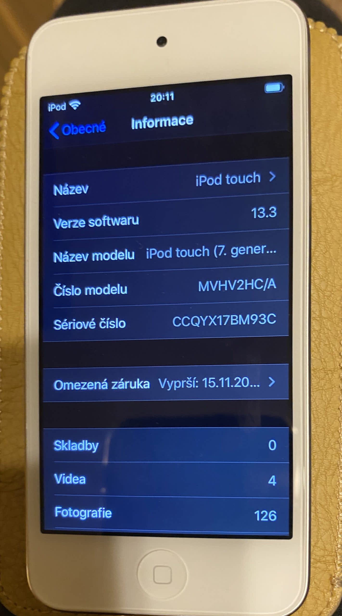 Šedej IPod touch koupenej v listopadu s dokladem