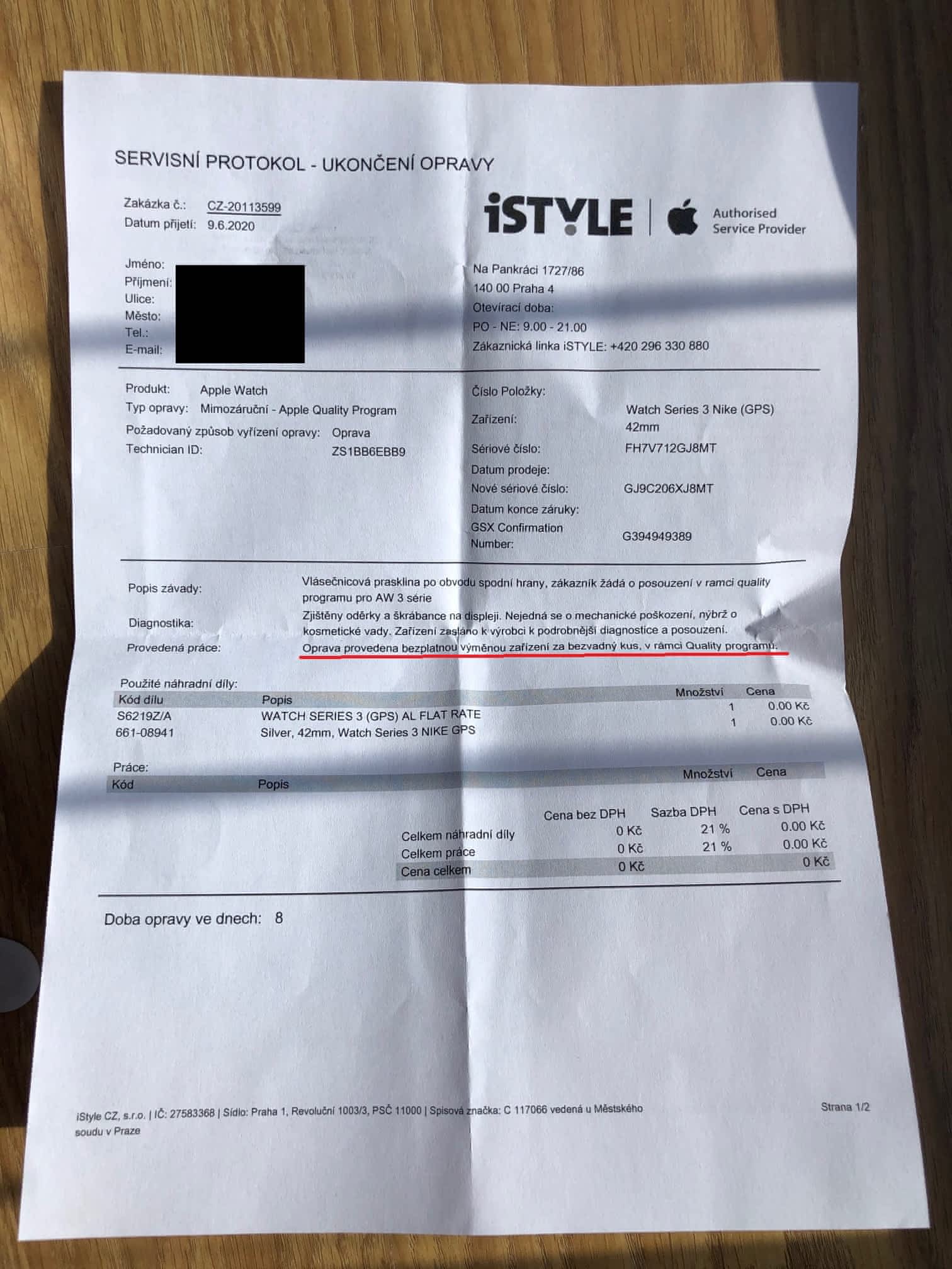 Nejsem si jist, jestli je tělo v záruce – dle mě by být mělo (je to nový kus), ale v iStyle mi tvrdili, že není. Tak raději uvádím, že záruka není.