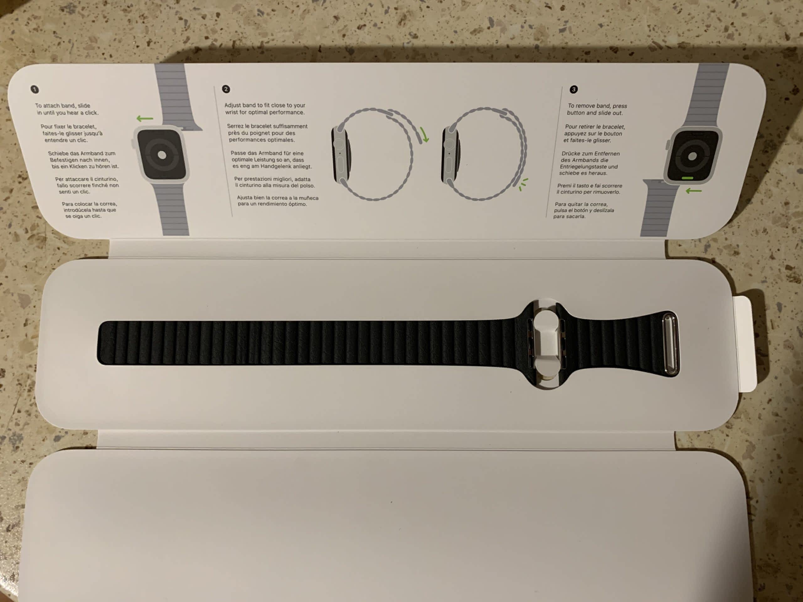 Prodám kožený řemínek Apple Leather Loop Black vel. 44 mm – Médium.