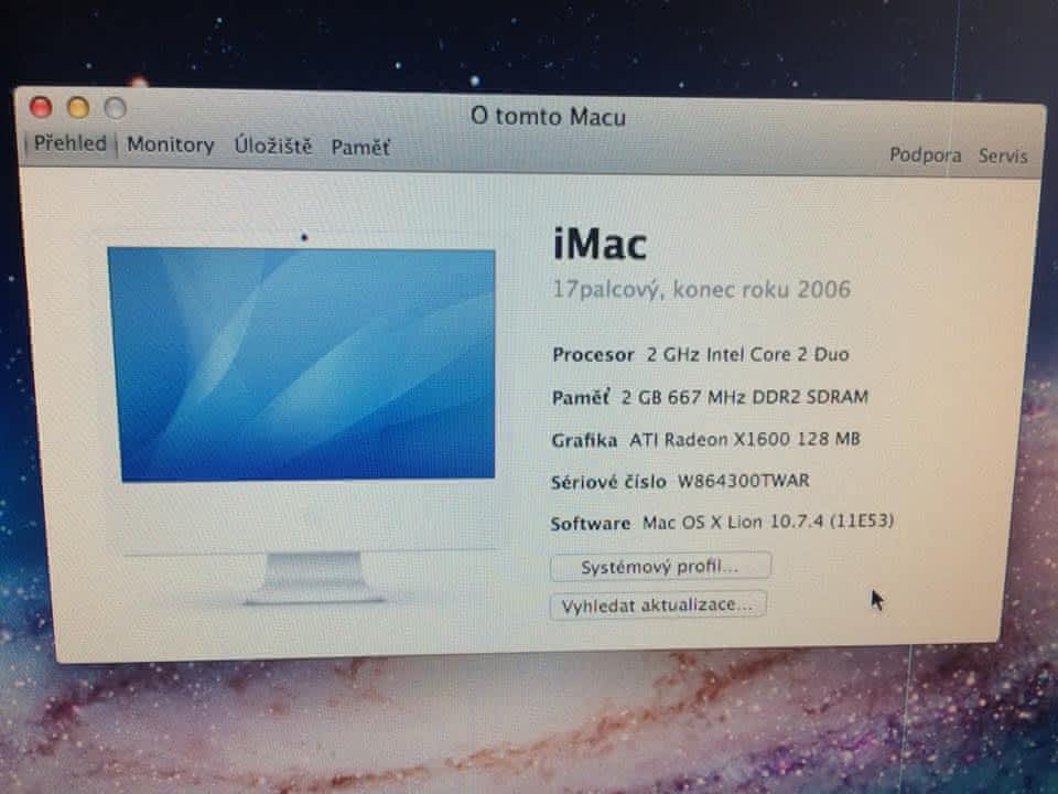 prodam starsi mac 17palců, ma par mrtvých bodu na monitoru, kupuji nové a musí z domu :/