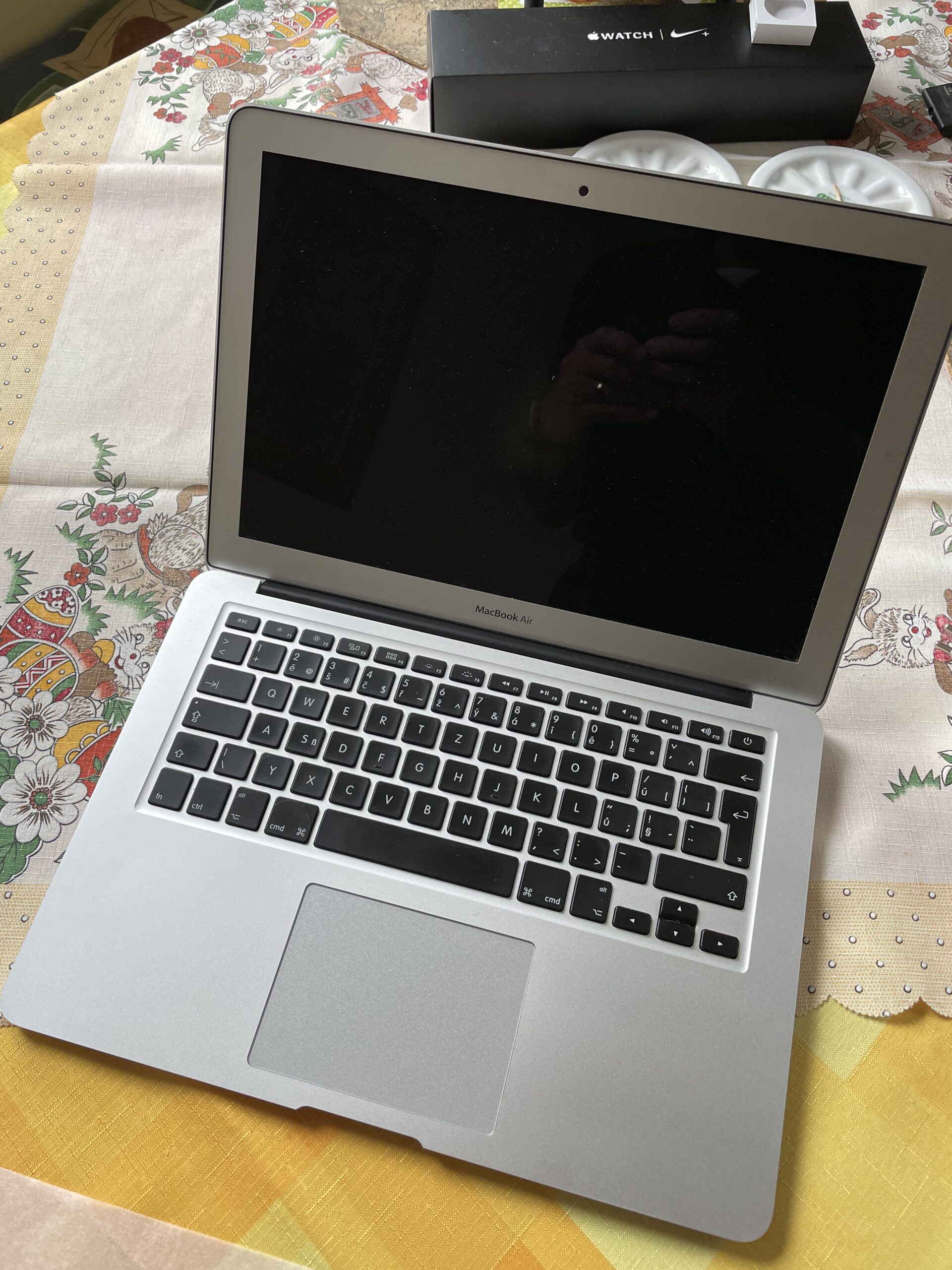Prodám Mac Book Air 13" 4/128GB silver . Zakoupen v Alze 27.8.2015 za 25.929,- v naprostém pořádku používán pouze na stole, tedy bez škrábanců a oděrek. Baterie má výdrž přiměřeně k věku. Originál balení, faktura, dvě nabíječky i s magnetickými konektory a dvě redukce na HDMI a RJ-45.