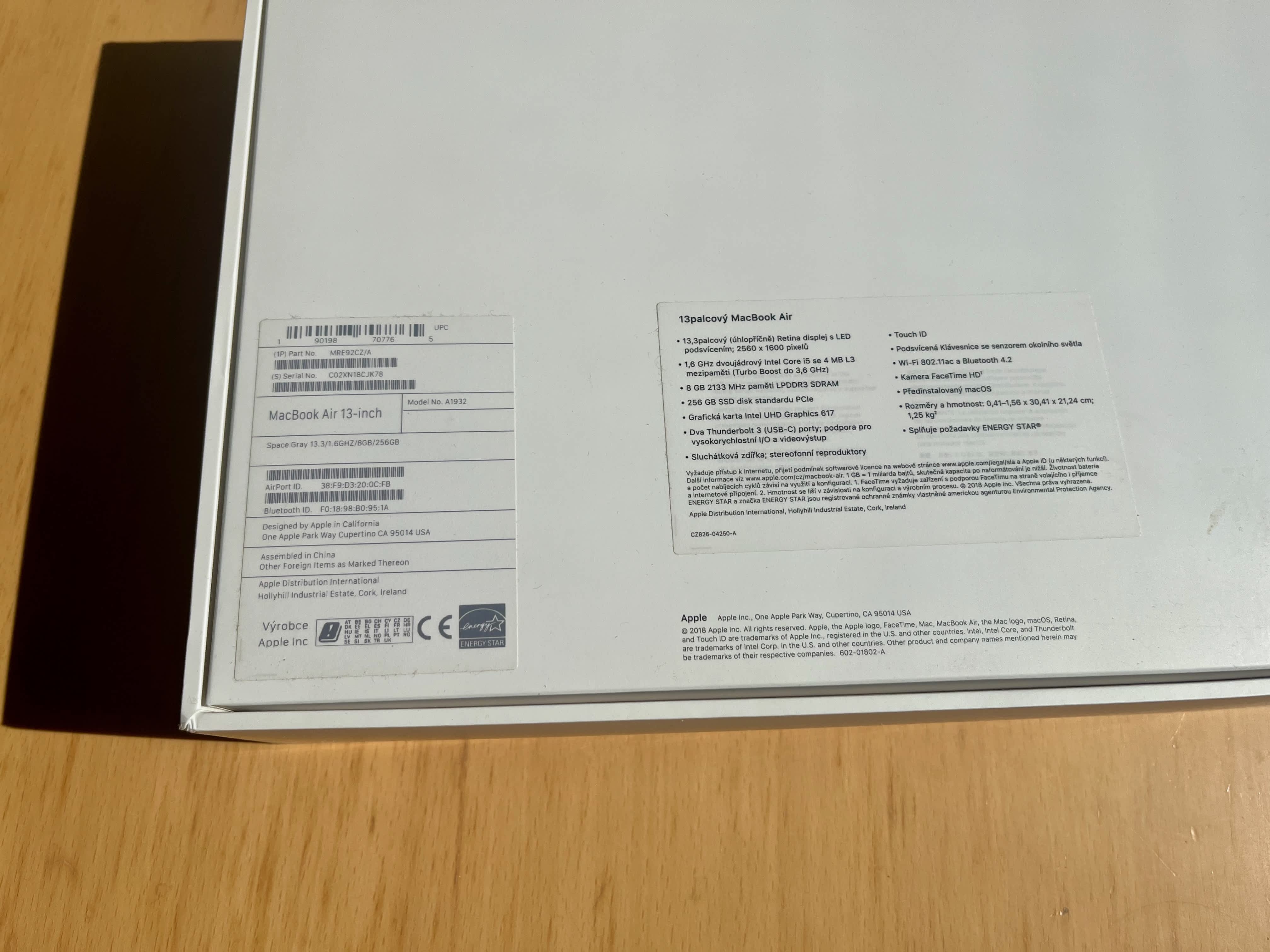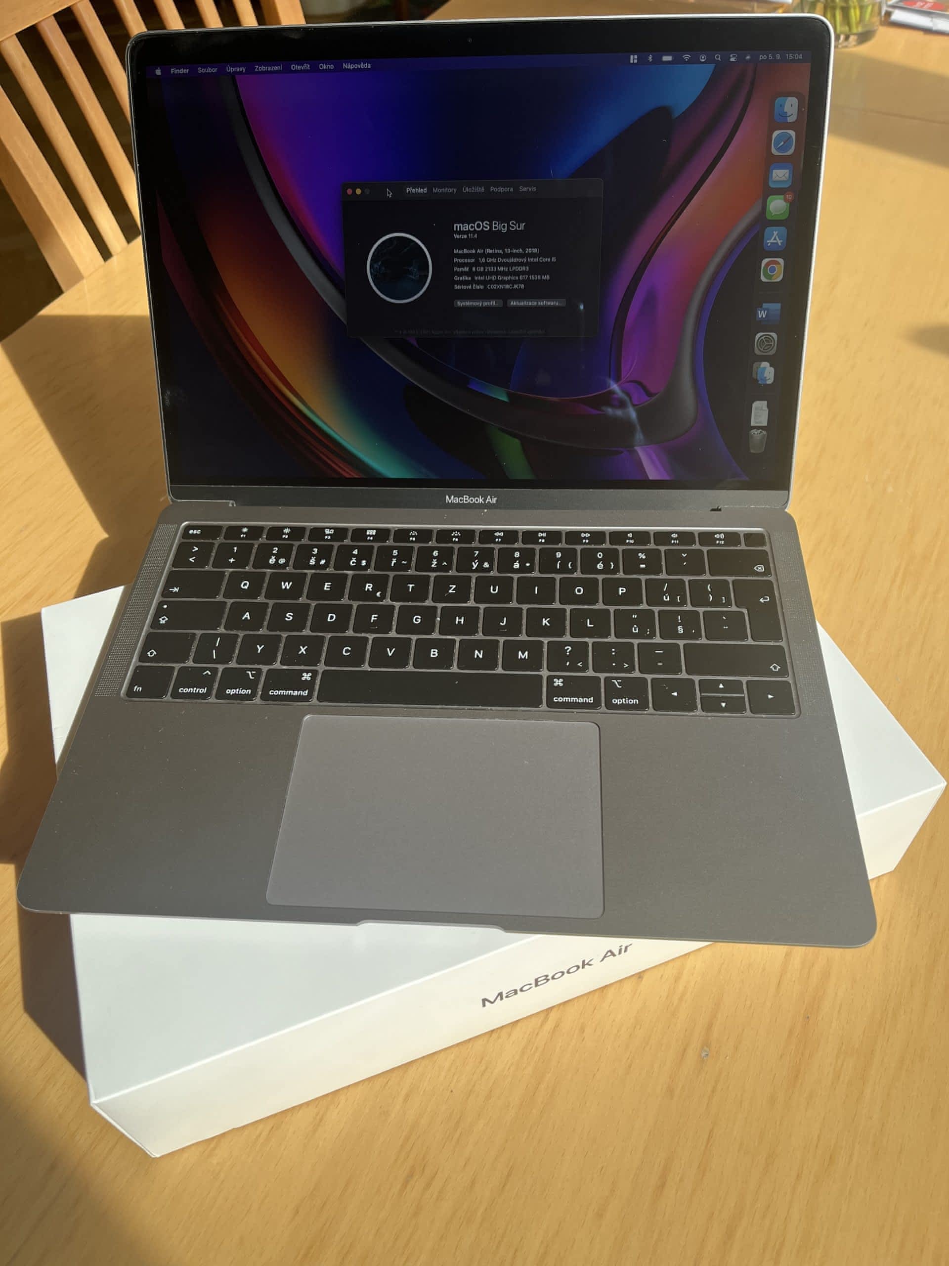Prodám Macbook Air z roku 2018 – 13,3" Retina displej (2560×1600), 2 jádrový procesor Intel Core i5 (1,6 GHz), 8 GB RAM LPDDR3, 256 GB SSD, Intel UHD Graphics, senzor Touch ID, WiFi ac, Bluetooth 4.2, HD webkamera, 2× Thunderbolt 3 / USB 3.1 – Type C, podsvícená klávesnice, koupeno v roce 2019. Macbook je ve výborném stavu, bez škrábanců a poškození, jelikož byl celou dobu ve vyfoceném hard shell obalu. Předání preferuji osobně v Praze, případně po cestě mezi Prahou, Orlickými nebo Lužickými horami nebo poštou po platbě předem.