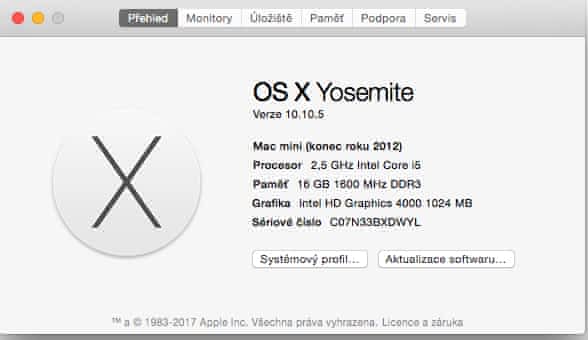 Uvažuji nad prodejem svého letitého kamaráda, Maca mini late 2012 s možností výměny interního disku. Core i5 – 2,5 GHz, 2×8 GB ram 1600, intel HD grafika 4000, 500 GB SATA disk.