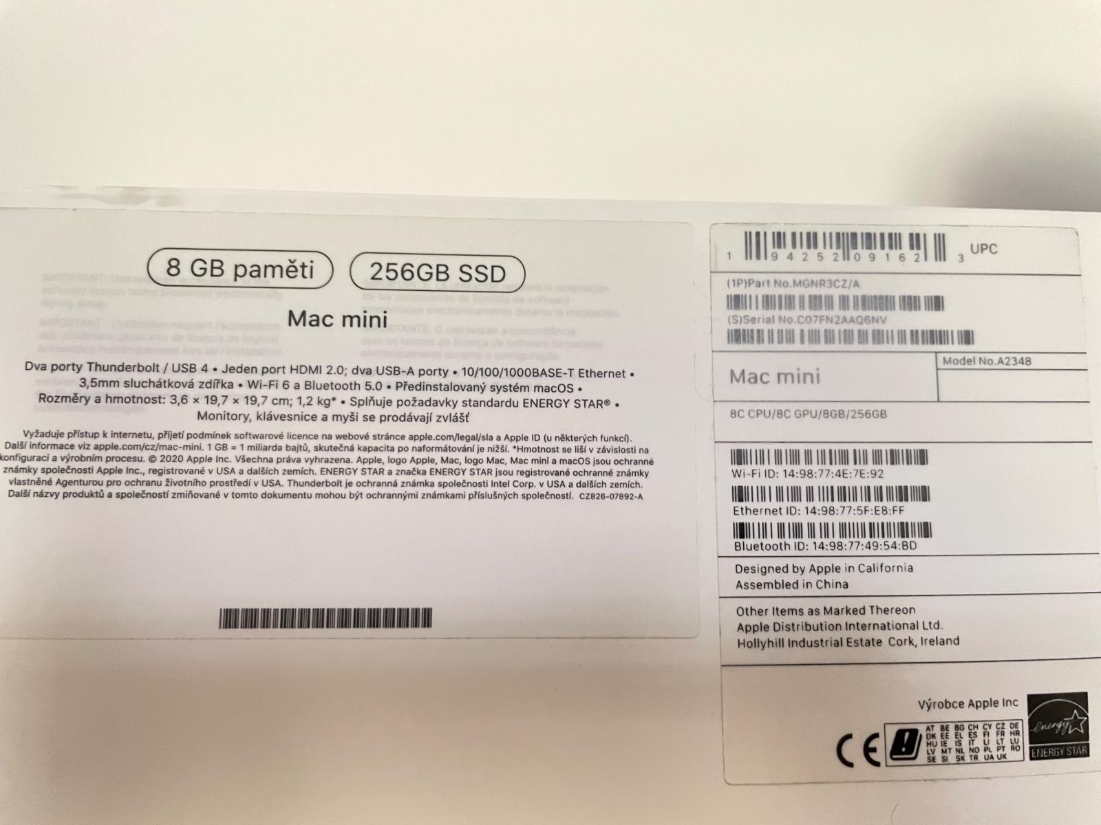 Prodám počítač Mac mini 2020 s procesorem M1 v konfiguraci 8GB RAM 256GB SSD.