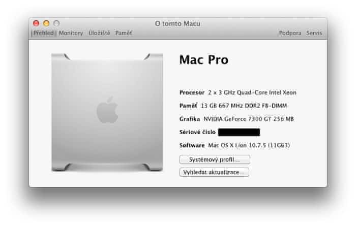 Prodám Mac Pro (model MacPro1,1) 2 x 3GHz Quad Core Intel Xeon (Woodcrest), 13GB RAM DDR2 FB-DIMM, 250GB SATA SSD, 250GB SATA HDD, NVIDIA GeForce 7300 GT, mechanika DVD-RW, vše plně funkční, vyčištěno.