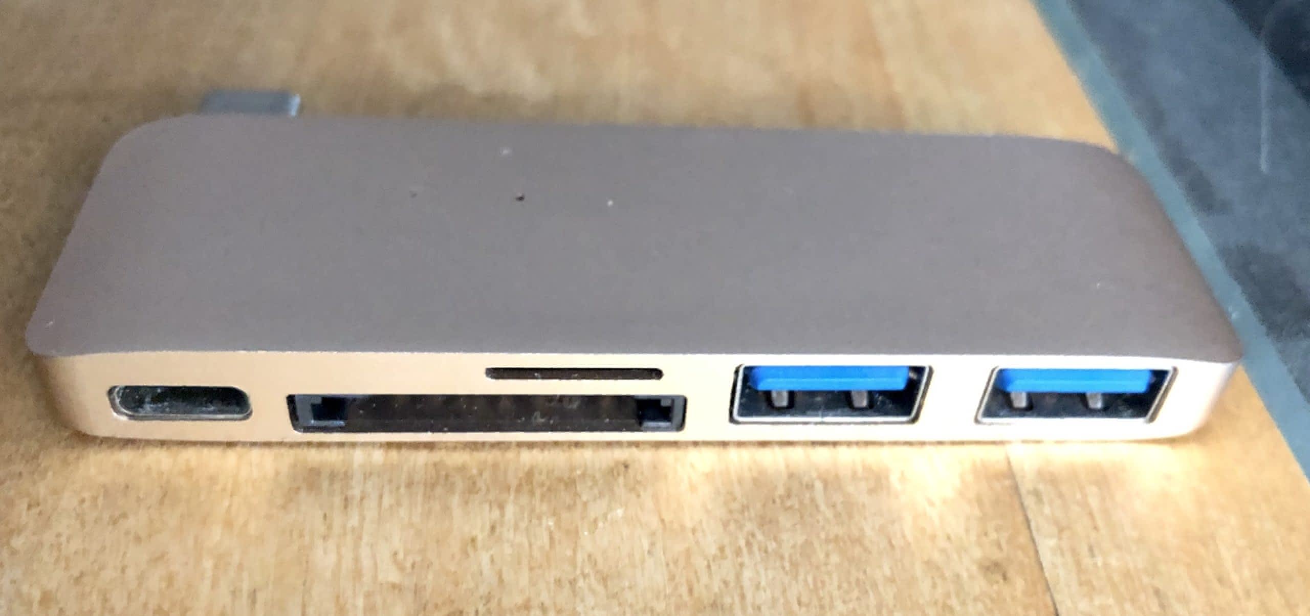 Stav je perfektní, vždy nošený v krytu. Součástí je origo USB-C nabíječka, bez krabice, přidám USB-C adapter na 2x USB 3.0 a (micro)SD karty.