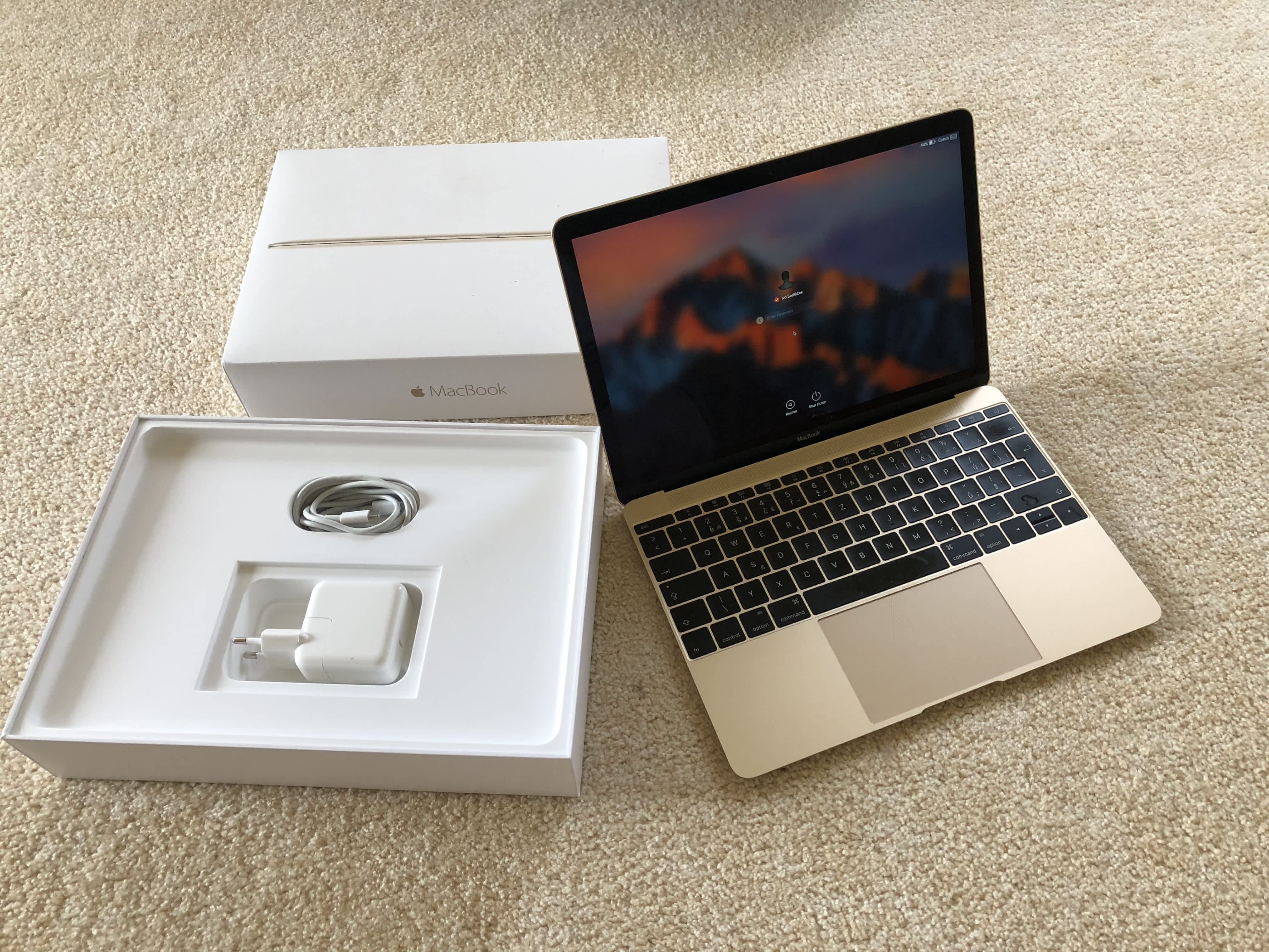 Prodám Macbook Retina 12" Zlatý 2016 v nejvyšší možné konfiguraci: 1.2 GHz/8GB RAM/512GB SSD. Macbook je v perfektním stavu a perfektně funkční. Zakoupeno v ČR u iWant – plná záruka je ještě 6 měsíců. V originálním balení s krabicí a nabíječkou. Zdarma přidám modrou tašku Asus.