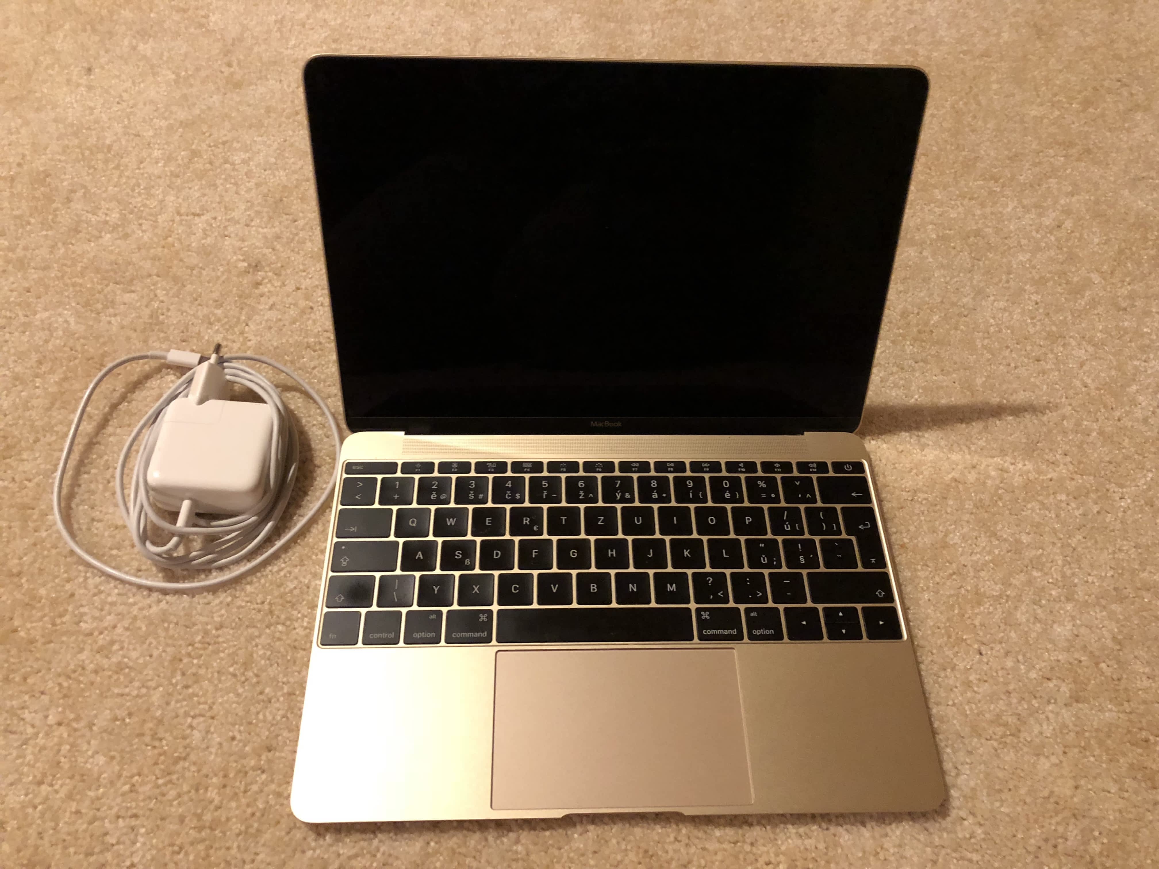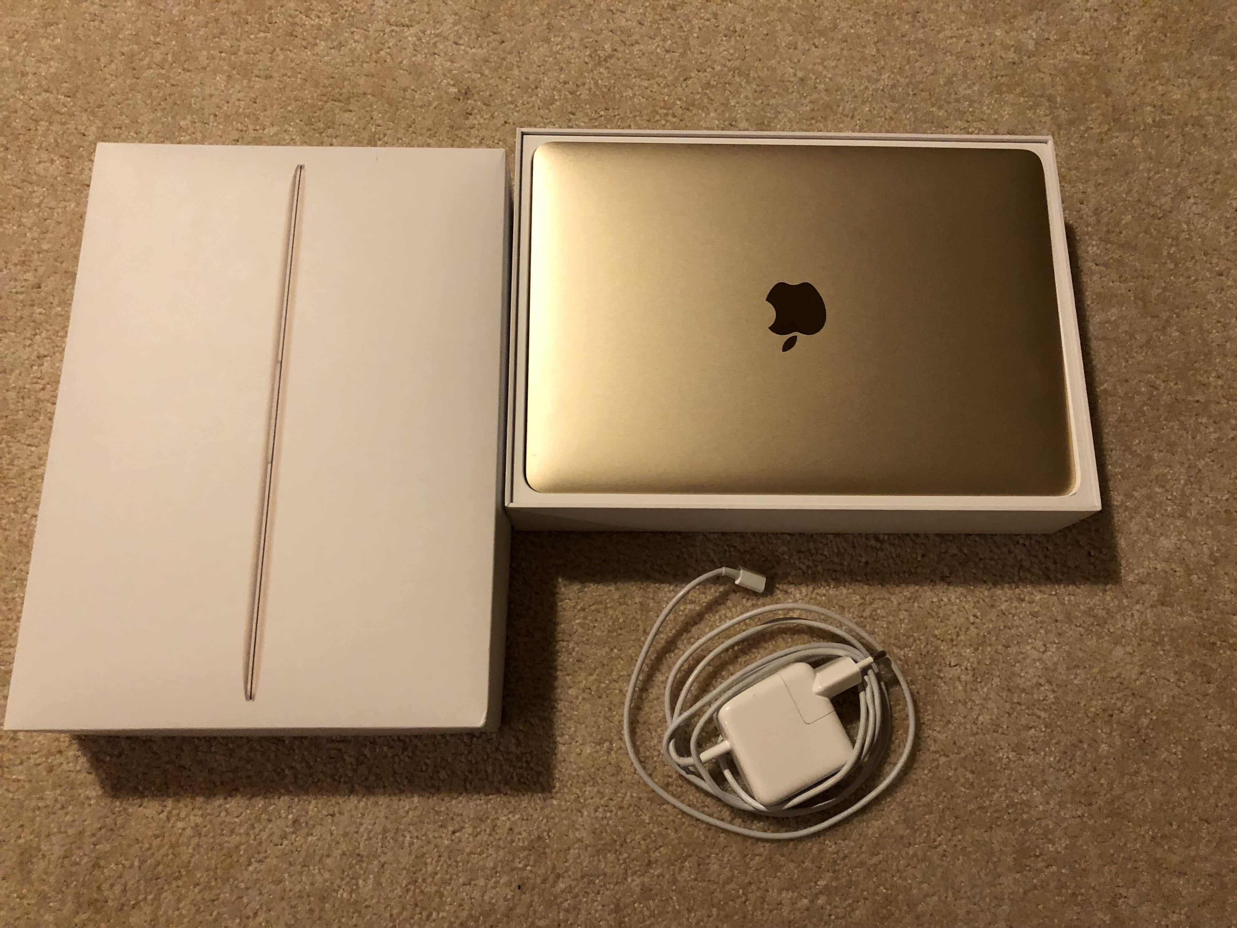 Prodám Macbook Retina 12" Zlatý 2016 v nejvyšší možné konfiguraci: 1.2 GHz/8GB RAM/512GB SSD. Macbook je v perfektním stavu a perfektně funkční. Zakoupeno v ČR u iWant – plná záruka je ještě 12 měsíců. V originálním balení s krabicí a nabíječkou. Zdarma přidám modrou tašku Asus.