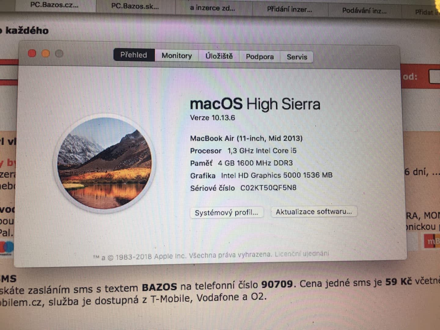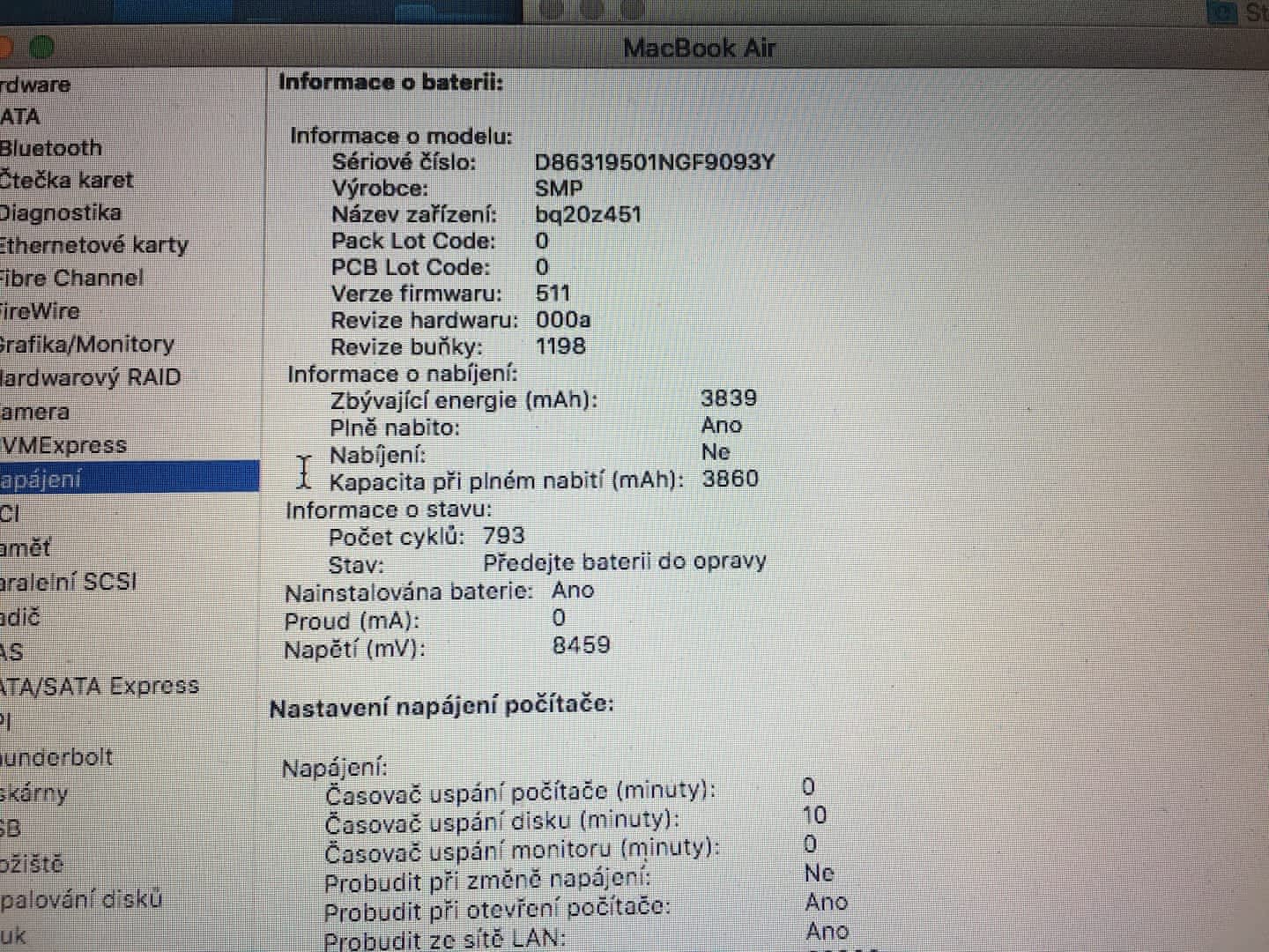 MacBook Air 11” 2013. Baterie je ještě původní a má už 810cyklu.