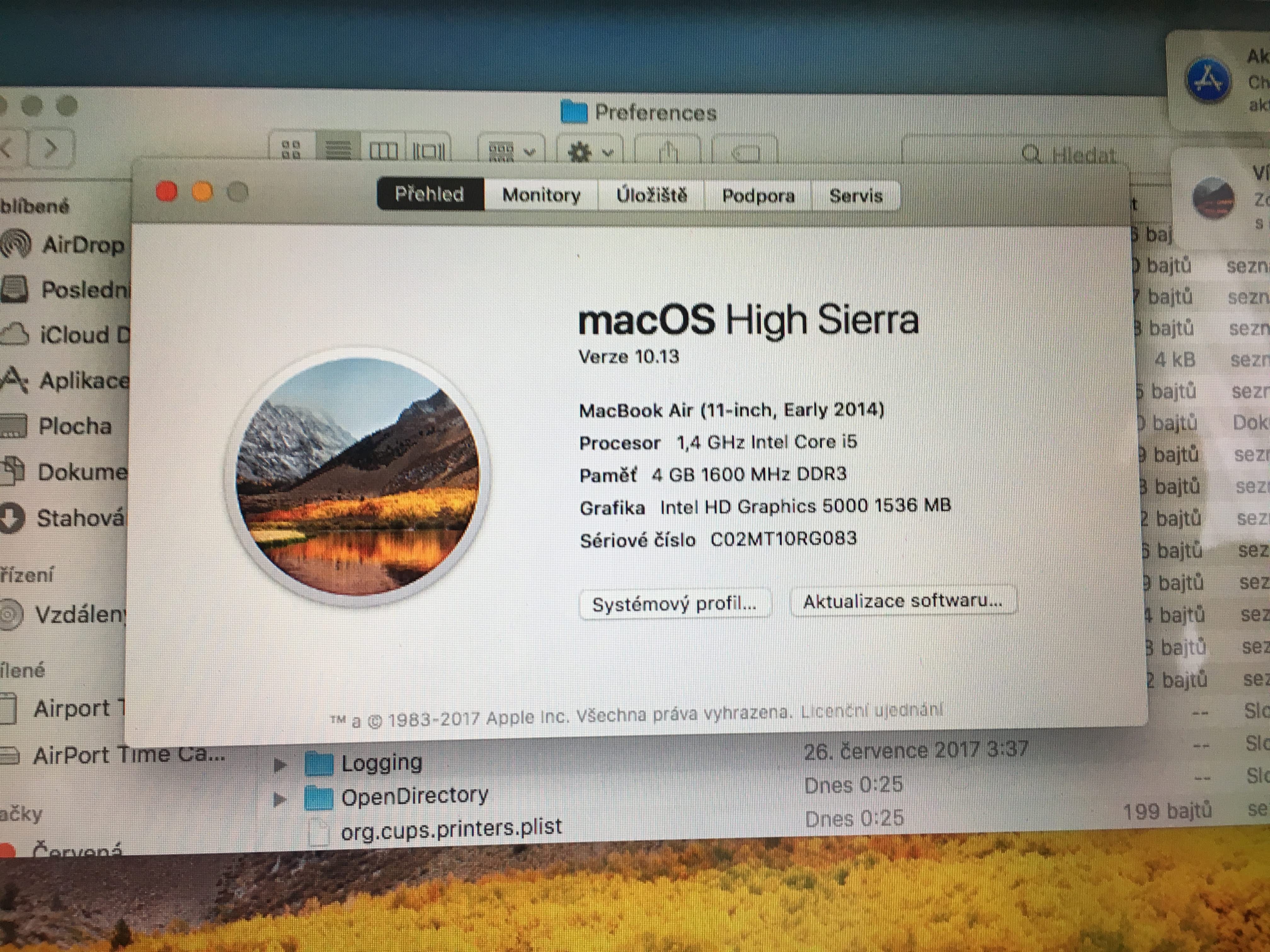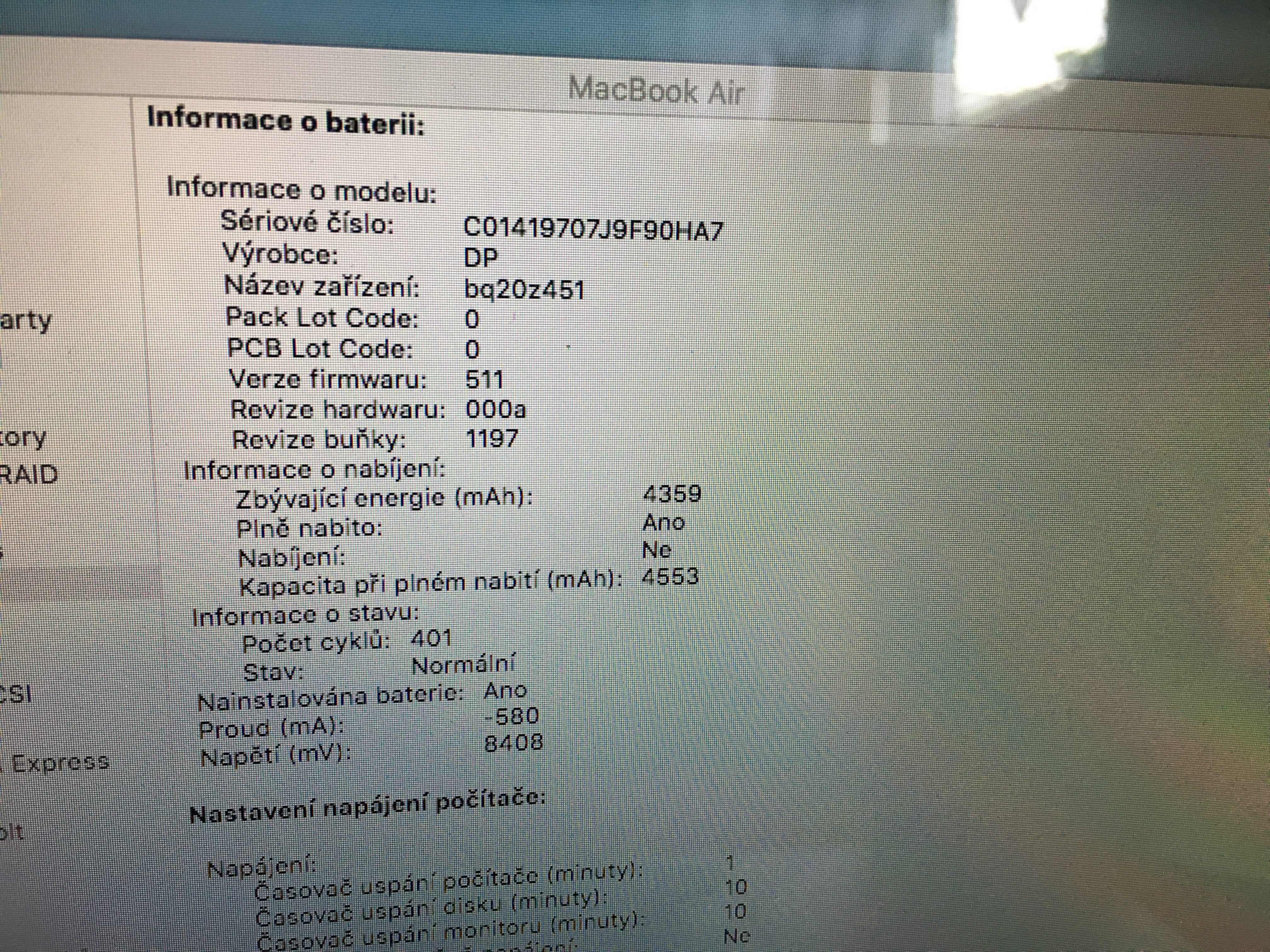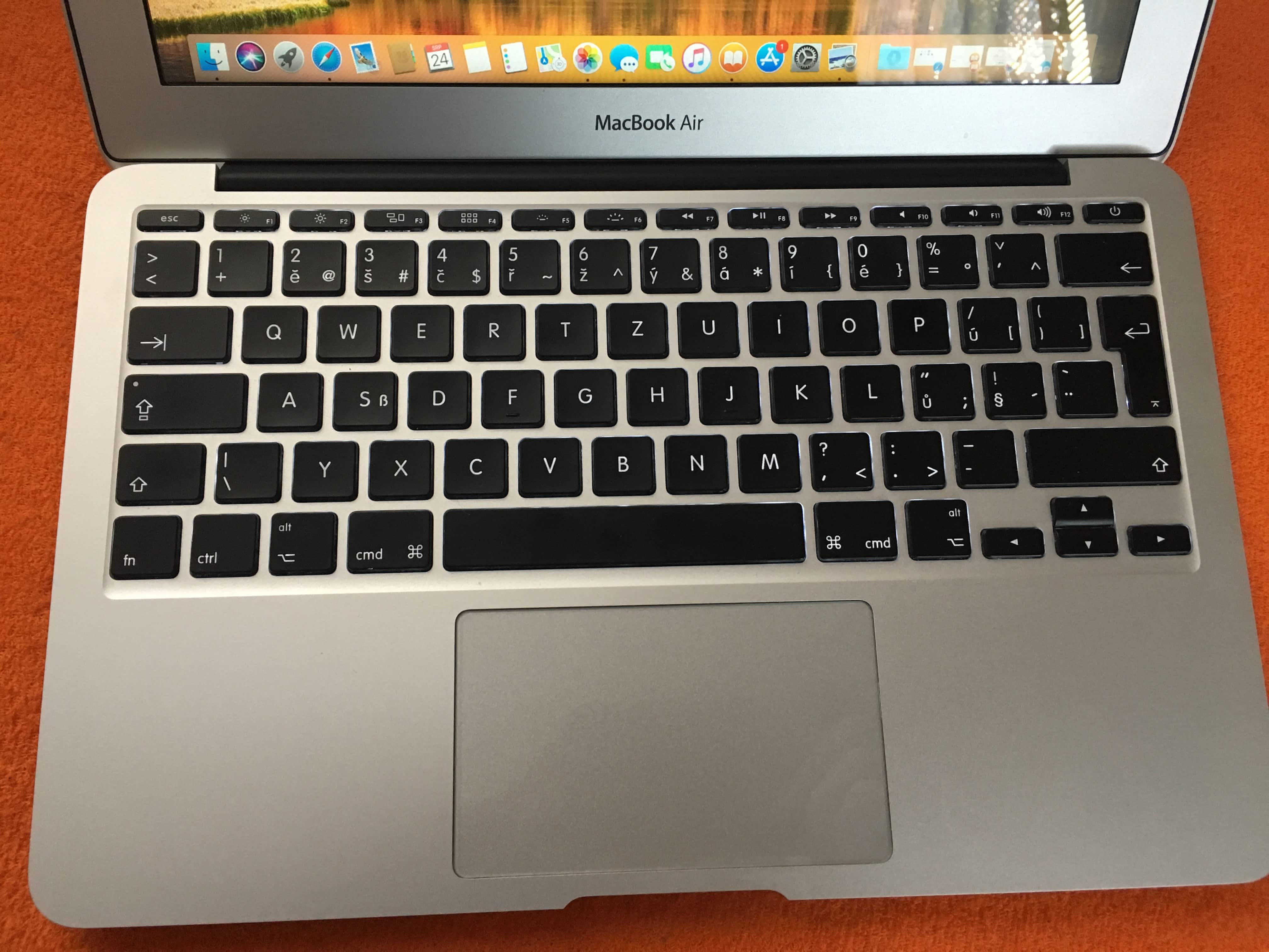 MacBook Air 11” 2014. Vizuálně top stav od začátku nalepéna folie na touchpadu a je i nalepené tvrzené sklo na displeji. Jediná chyba Macbooku, že přestala fungovat klávesnice a touchpad ale podsvicení klávesnice funguje, opravu jsem zatím neřešil, ale vypadá to jen na odpojený přivodní kabel. extrení klavesnice a myš funguje takže macbook se dá v pohodě používat. Baterie je původní a má jenom 401cyklu. Vydrž pořád skvělých 8h.