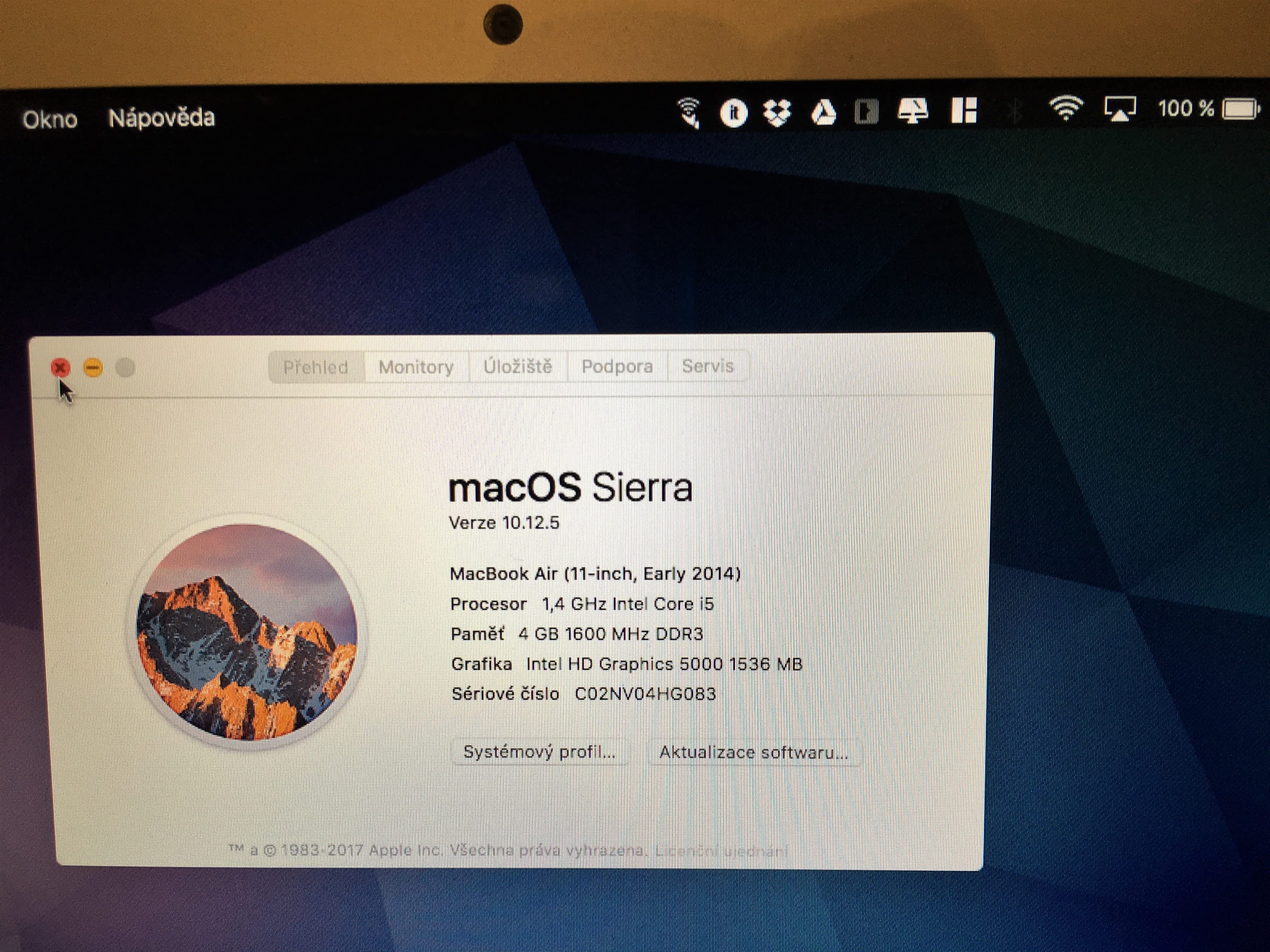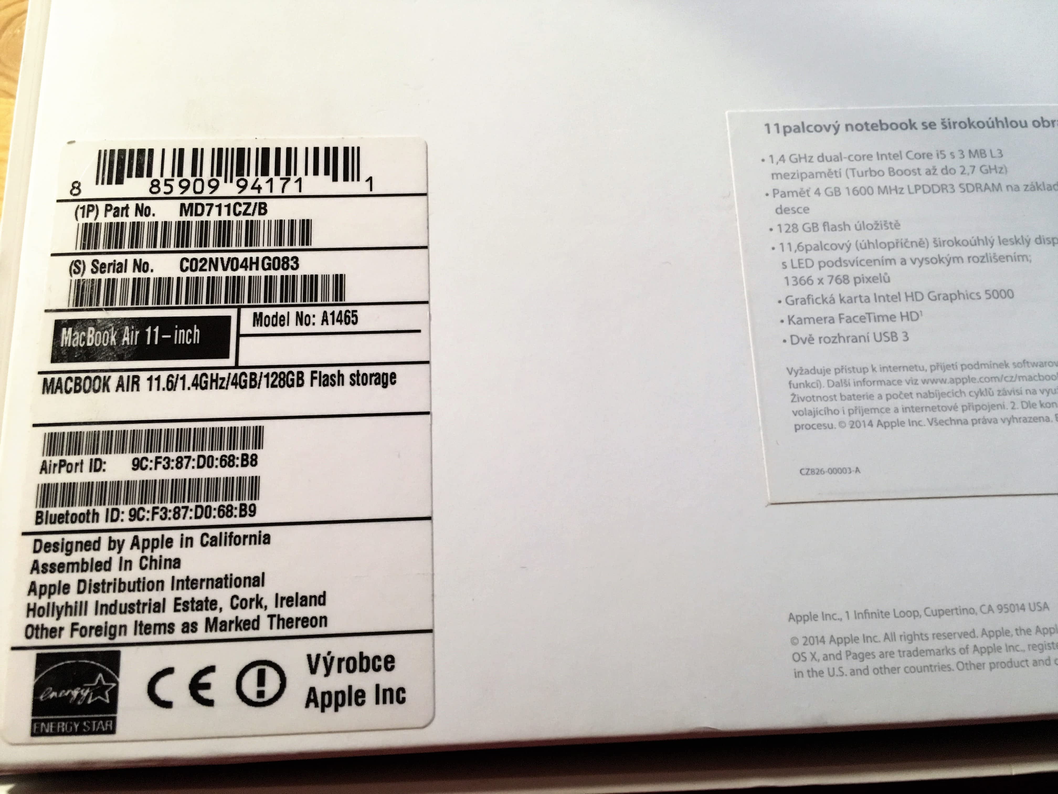 Top stav, baterie jen 141 cyklů! Používal jsem ho hlavně po cestách na schůzky a na prezentaci odvedené práce. Důvod prodeje přechod na iPad Pro. Dá se na něm krásně pracovat i na cestách -ten větší 13tka váží pocitově jak notebook ale 11tka je lehoučká jak tablet a má jasnější monitor. Verze 2014. 1,4 GHz Intel Core i5 procesor – 4 GB 1600 MHz DDR3 RAM – 128 GB SSD. Originální krabice, orig. kabel navíc pro prodloužení nabíječky o nějaký metr navíc, magsafe nabíječka. HD facetime kamera a grafika HD5000, dva USB3 konektory. Další fotky klidně dodám na mail i větší rozlišení.Osobně k vyzkoušení po Vysočině, jezdívám do Prahy i do Brna. Narazíte i na zhuntované kusy po 700 nabitích, ale tady jen 141 krát baterie i ntb stav nového.