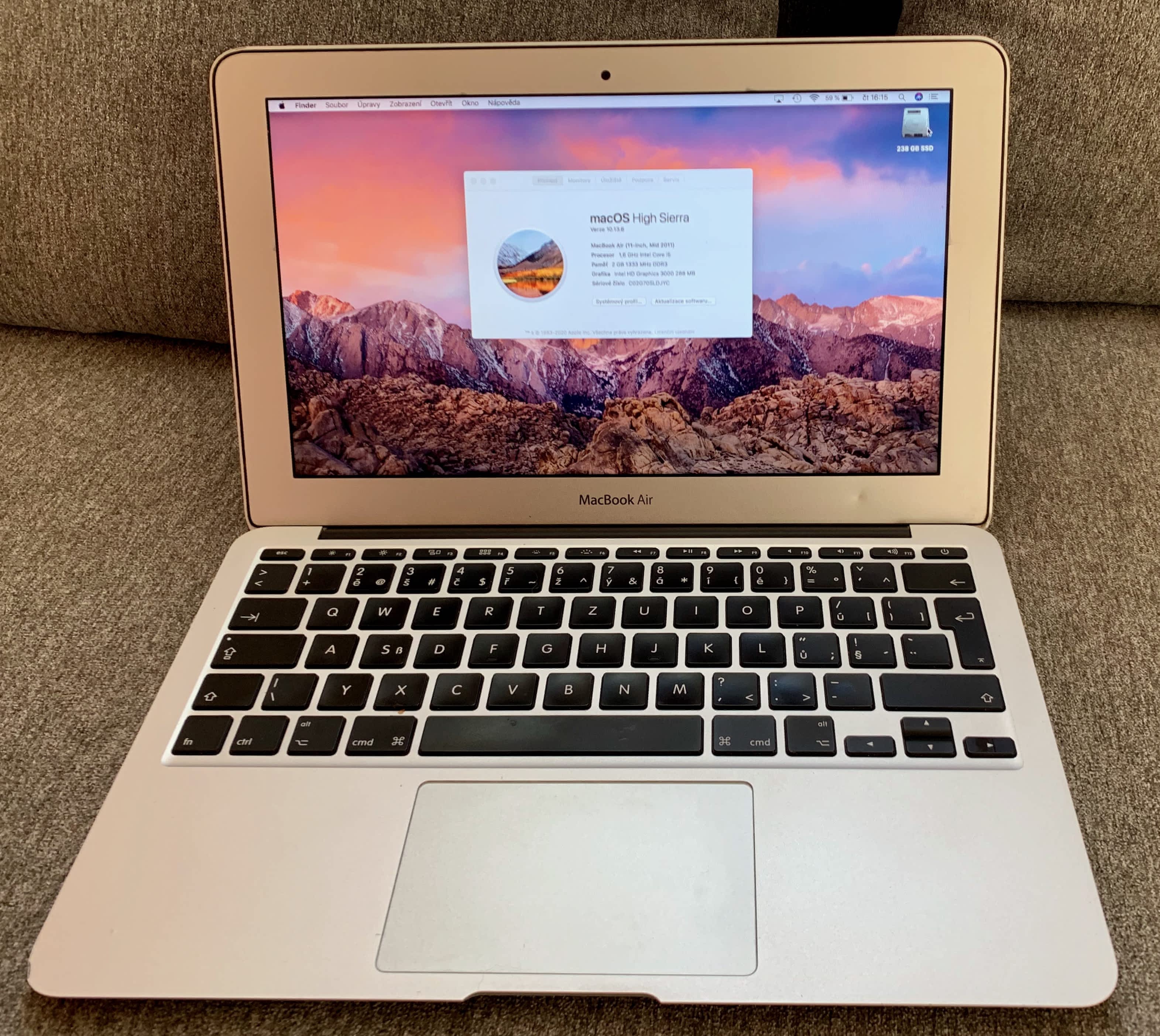 Prodám hliníkový Macbook Air 11 palcový (mid 2011) česká podsvícená klávesnice