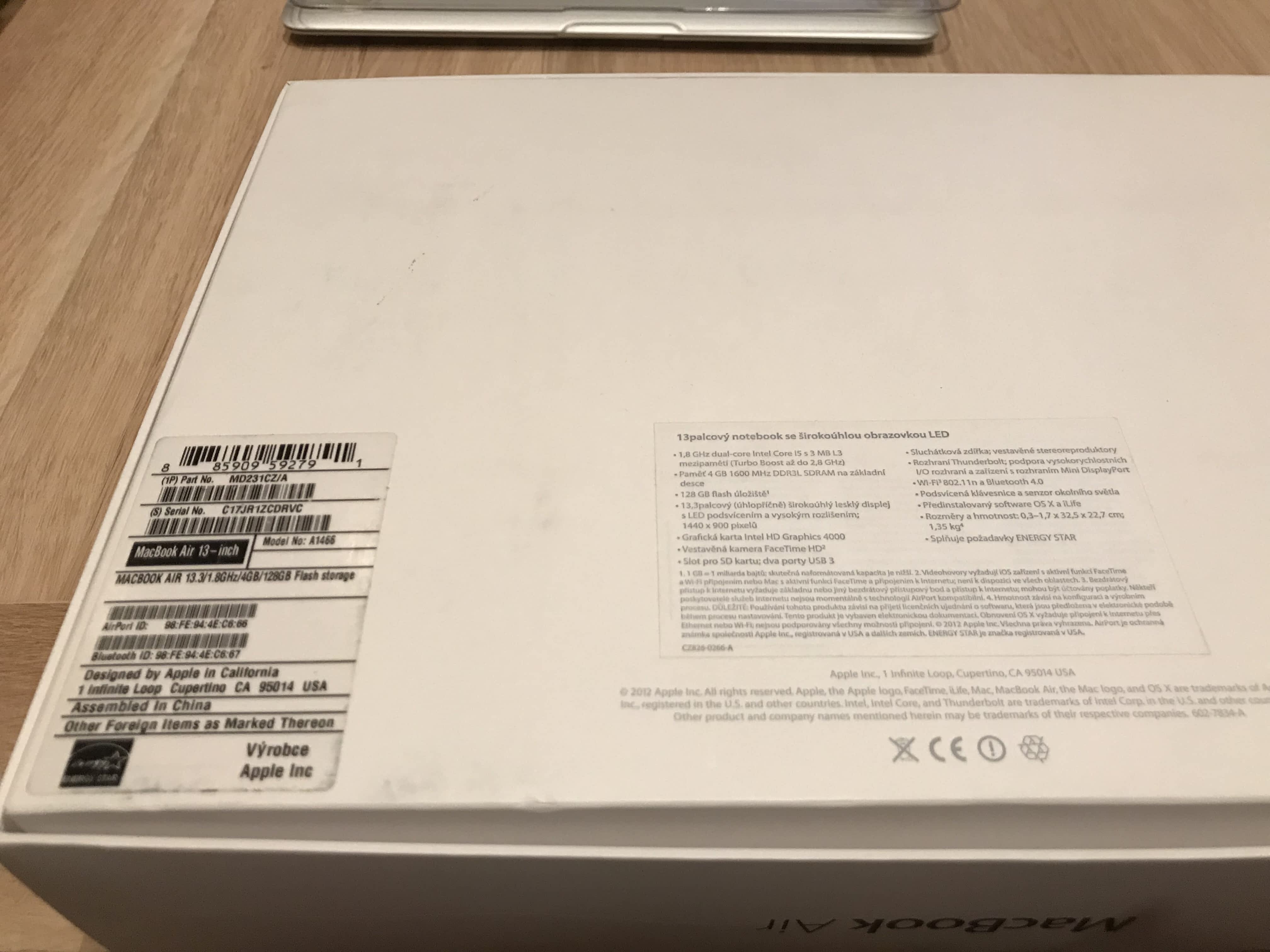 Prodám Apple MacBook Air 13” – mid 2012, výborný zachovalý stav.