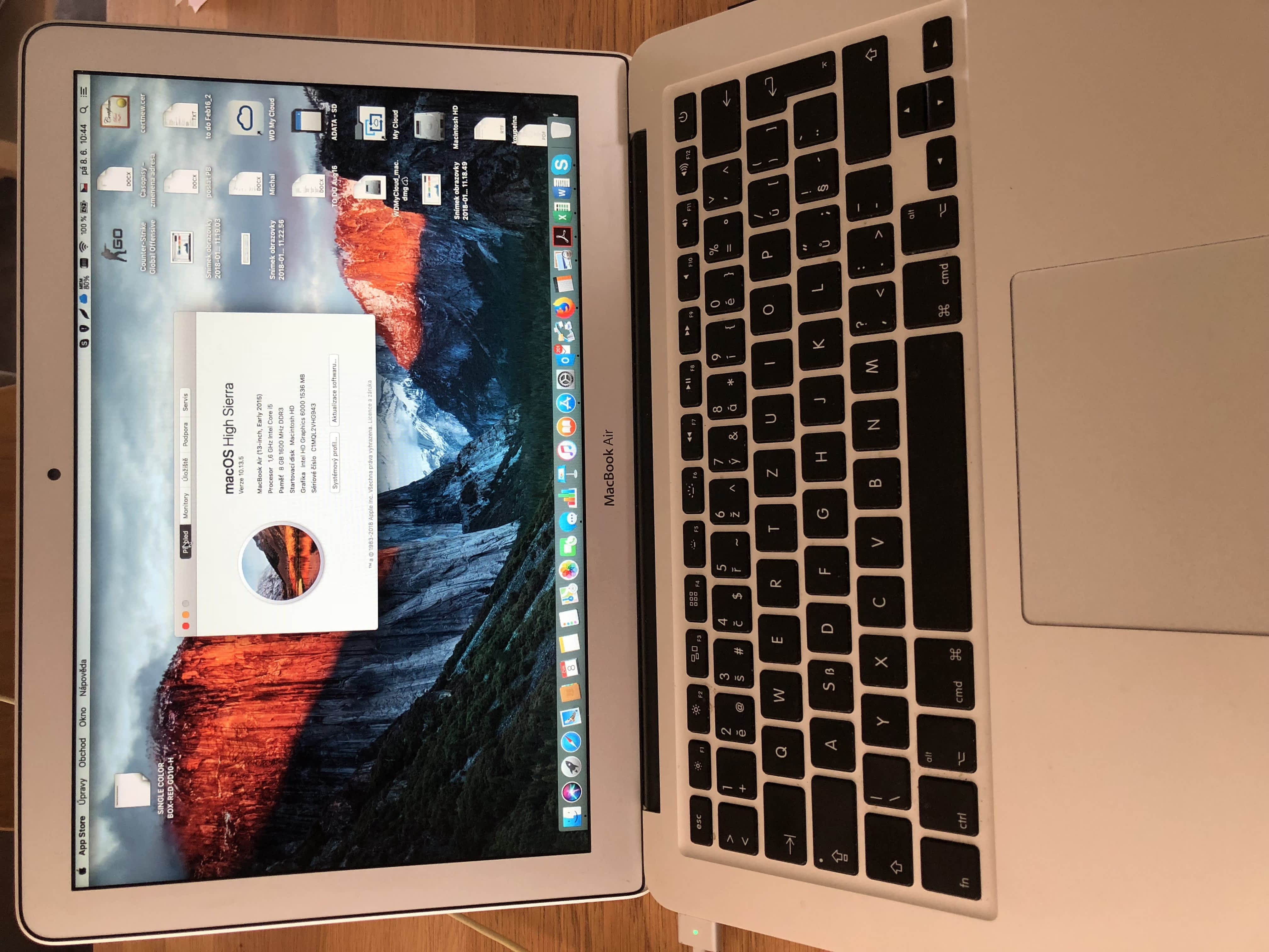 Intel Core i5 1.6GHz Broadwell, 13.3" LED 1440×900, RAM 8GB, Intel HD Graphics 6000, SSD 128GB, WiFi 802.11ac, BlueTooth 4.0, Webkamera, USB 3.0, 1x Thunderbolt port, podsvícená klávesnice, MAC OS X Yosemite (OS updatován)