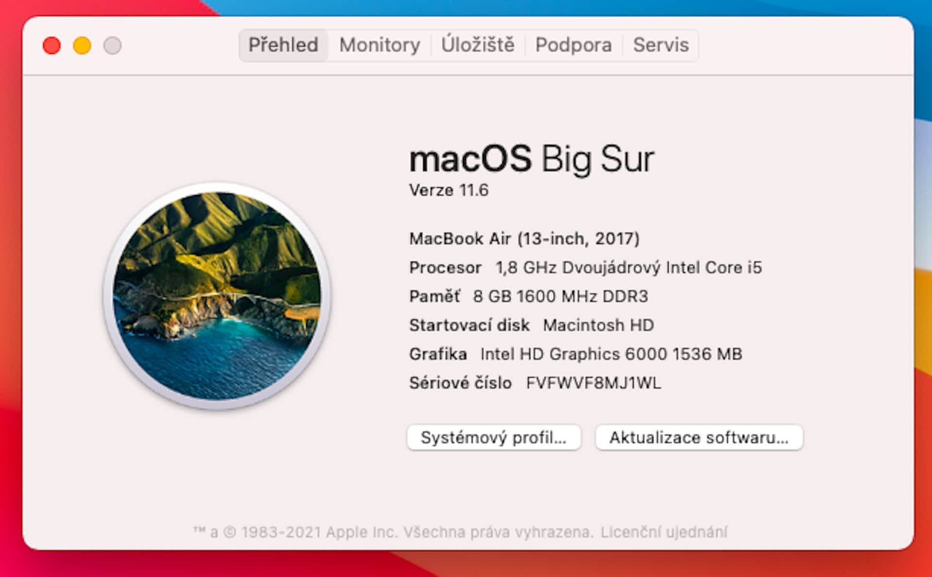 Procesor: 1,8 GHz Dvoujádrový Intel Core i5
