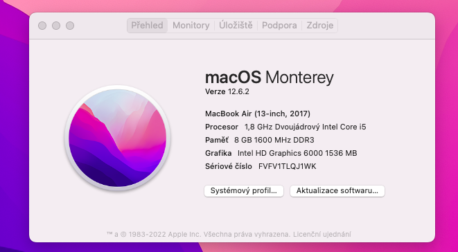 Procesor: 1,8GHz Dvoujádrový Intel Core i5