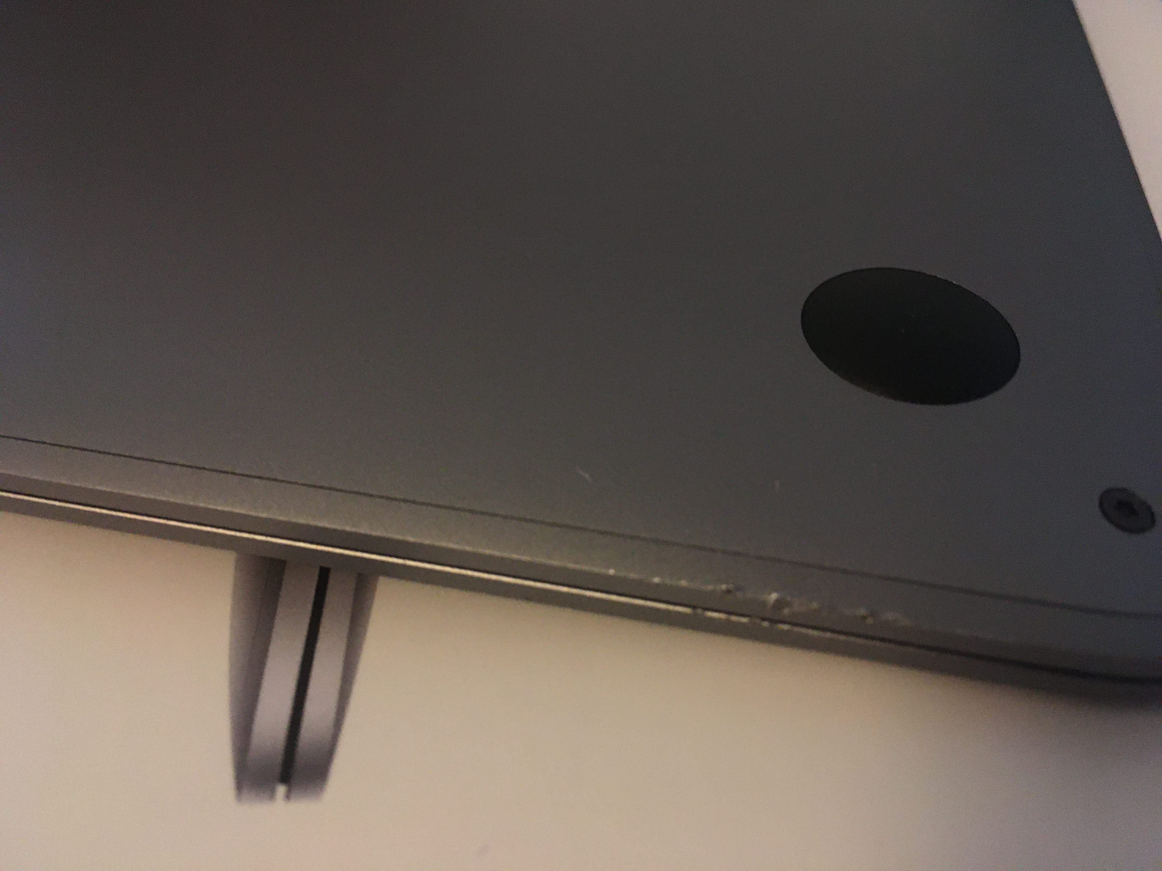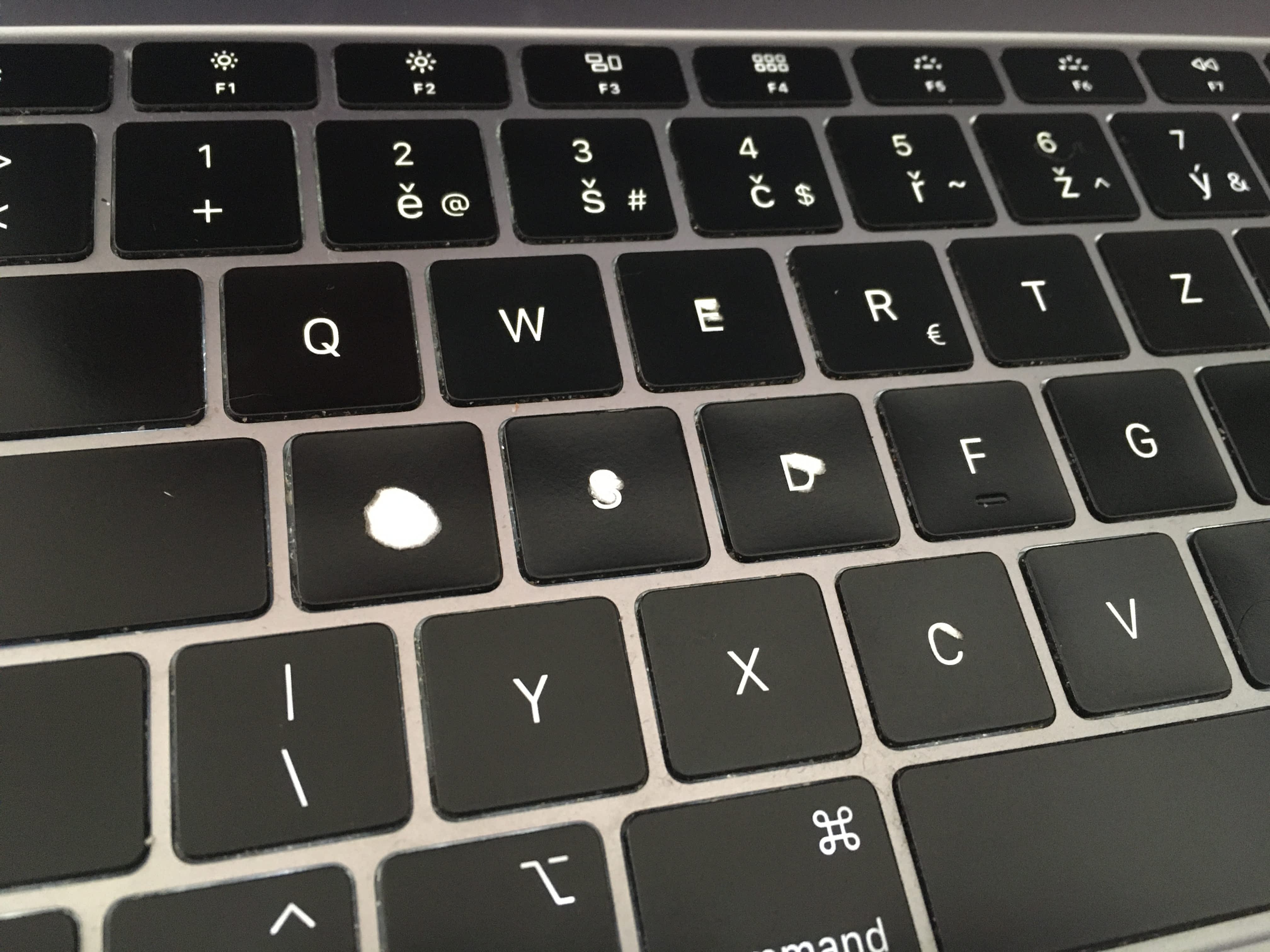 Počítač má používáním ošoupané klávesy ASD, na spodní hraně škrábanec a po pádu má ťuklý pravý horní roh – viz přiložené fotografie. Na funkčnost nemá nic z toho vliv, počítač mi dál plně funguje, prodávám z důvodů přechodu na M1 MBA.