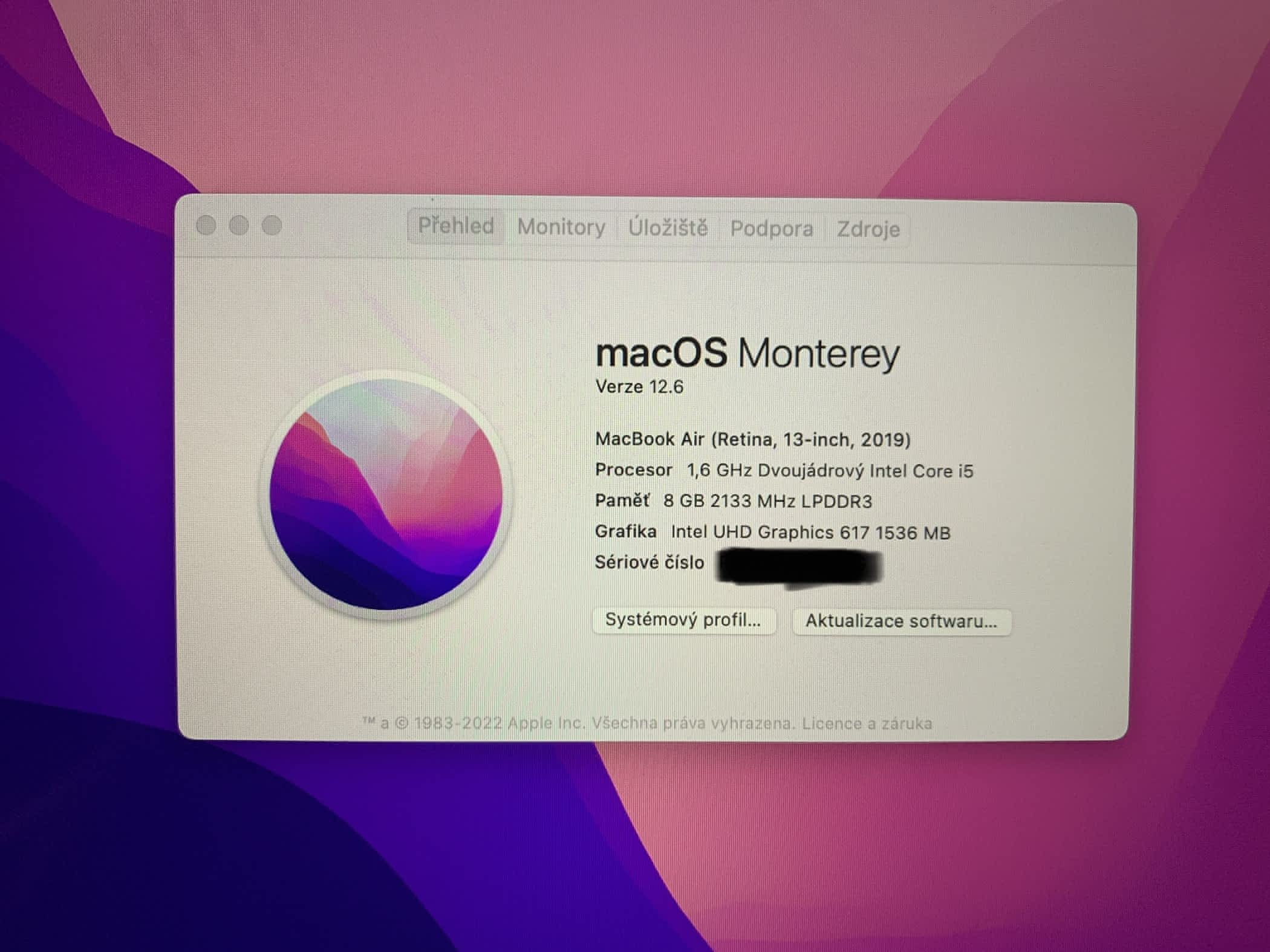 Prodám MacBook Air 13 2019 1.6GHz/8GB/128Gb Space Gray (model A1932) kupovaný v roce 2019. Používaný prakticky jen doma. 103 cyklů baterie. Perfektní stav. Včetně originálního balení a originální nabíječky. Předání ideálně v Praze.