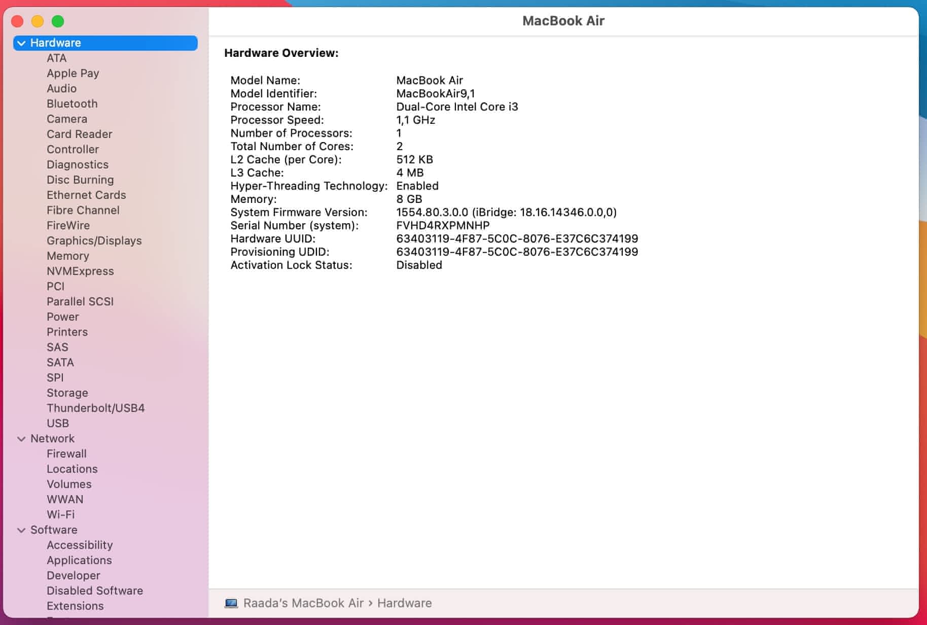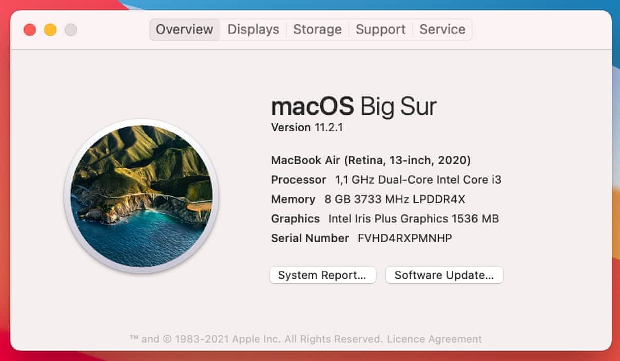 1,1 GHz, Intel Core i3, 8 GB, Intel Iris Plus