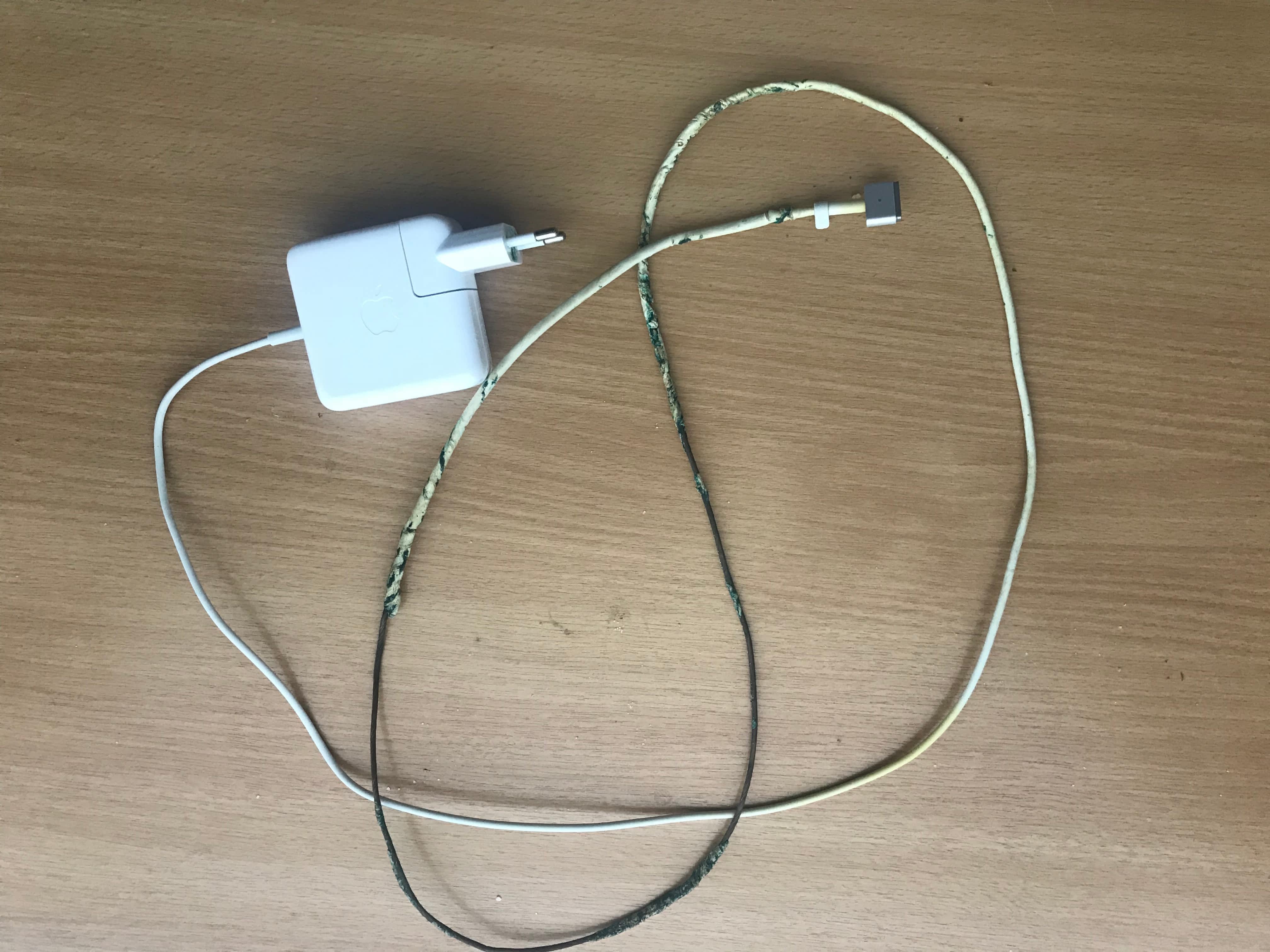 Musím upozornit pouze na nabíječku (viz. foto), která je poškozená, guma je skoro sedřená, každopádně plně funkční
