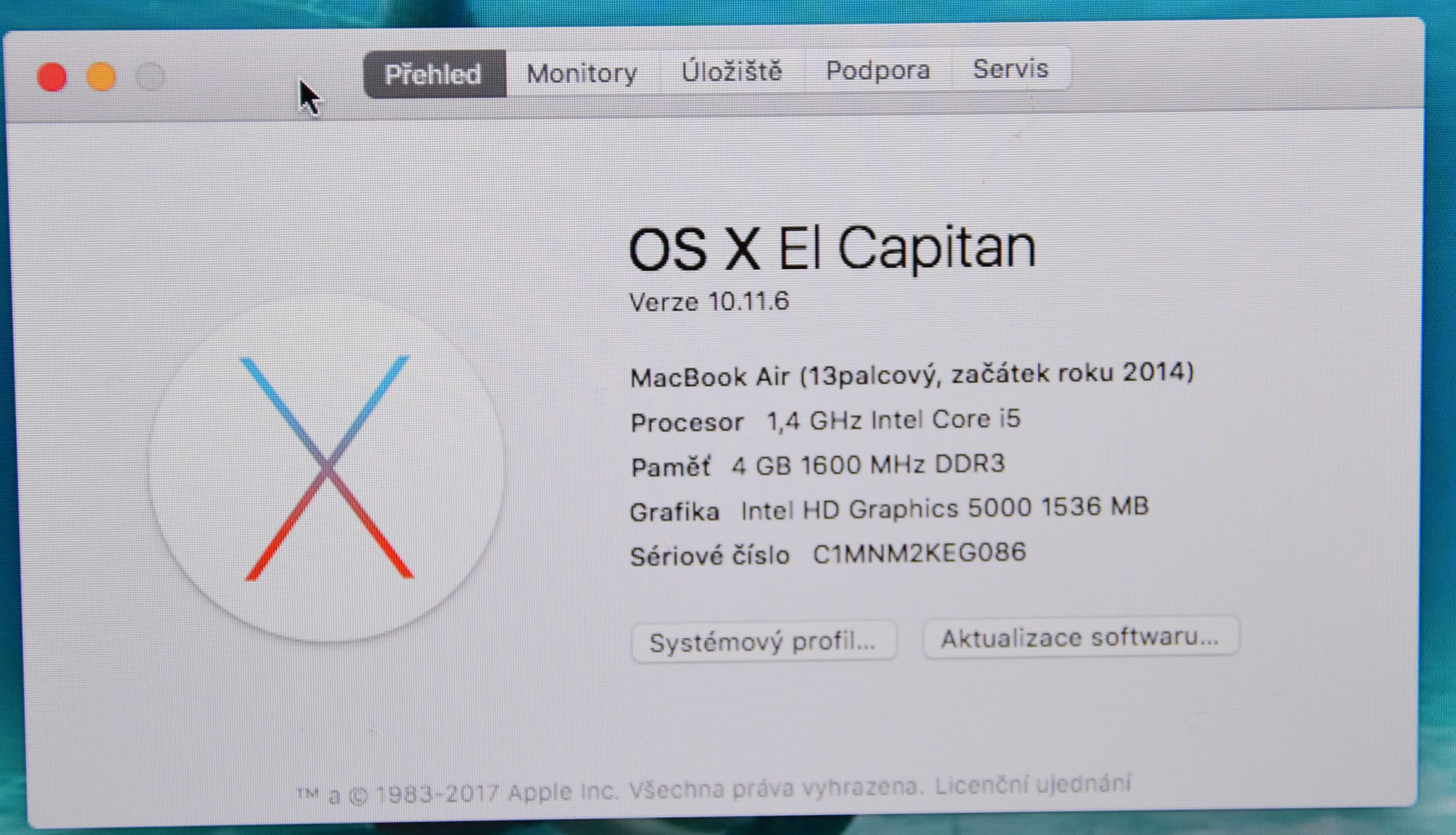 MacBook AIR 13.3" EARLY 2014 – Procesor: Intel Core i5 1.4GHz (Turbo Boost na 2.7GHz) (I5-4260U/Haswell ULT) – Paměť RAM: 4GB 1600 MHz DDR3 – Pevný disk: 256GB SSD – Grafická karta: Intel HD Graphics 5000 1536MB grafické paměti – Rozlišení displeje: 1440×900 – 2xUSB 3.0/Thunderbolt" port/AirPort 802.11ac/Bluetooth 4.0./SD Card (SDXC) – Baterie/Nabíjecí adaptér: 245 cyklů nabití. Nabíjecí Adaptér MagSafe 45W (US koncovka) – Rozměry: Váha 1.32 Kg – 1.7cm/32,5 x 22,7 cm Přidám obal a kryt na klávesnici MacBook je v perfektním stavu 9/10.