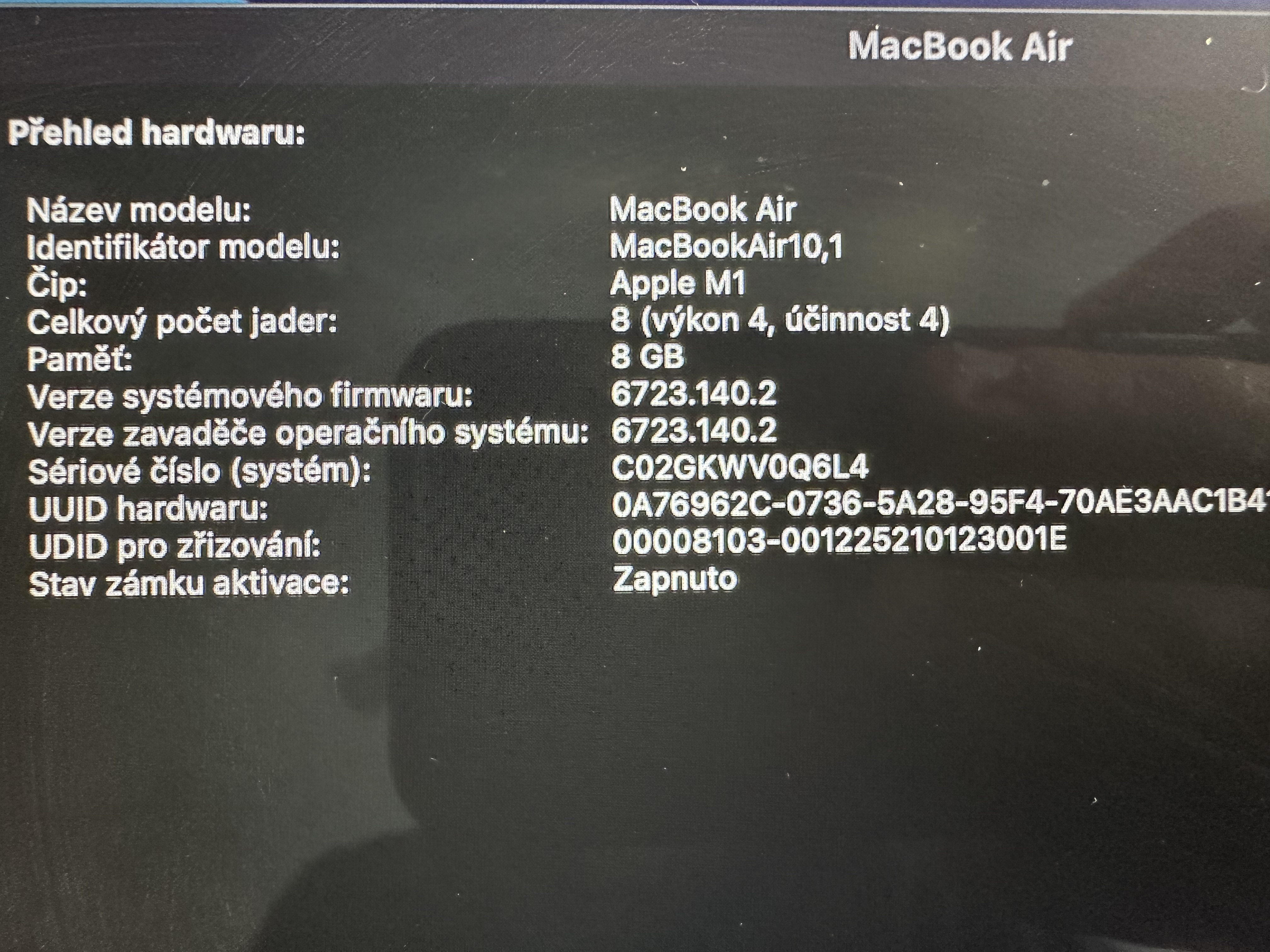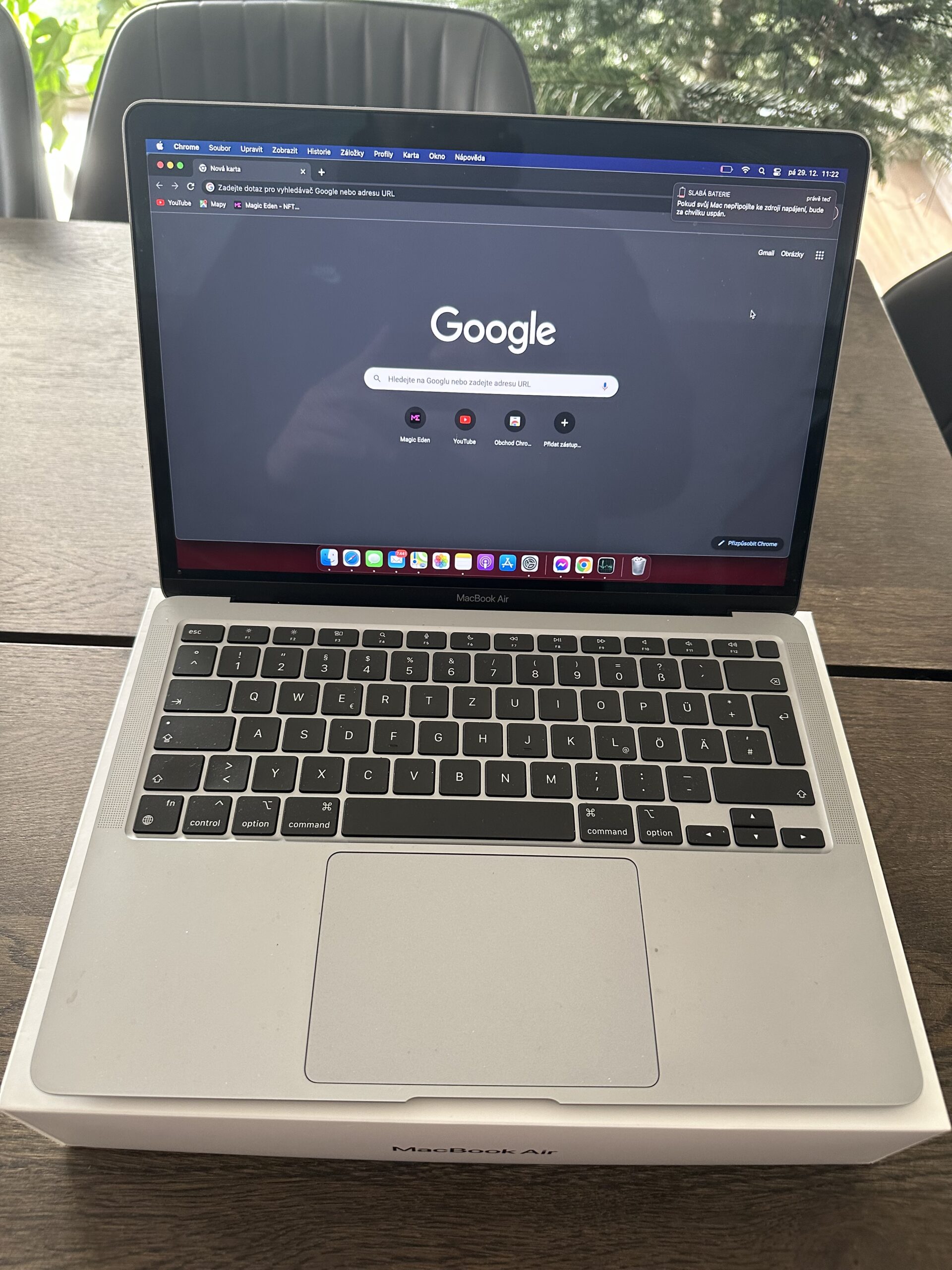 Prodam Macbook air 13.3 palcu, retina displej, malo pouzivany. Cip M1, 96% kapacita baterie. Macbook je v zanovnim stavu, lehka oderka na horni strane – na funkcnost nema vliv, viz foto. Pri rychlem jednani mozna sleva, na dobirku neposilam. Moznost odobniho predani. Prosim kontaktovat pouze whatsapp / imessage na cislo: +43 664 3941651, dekuji.