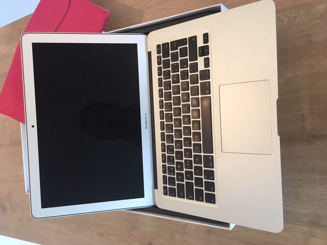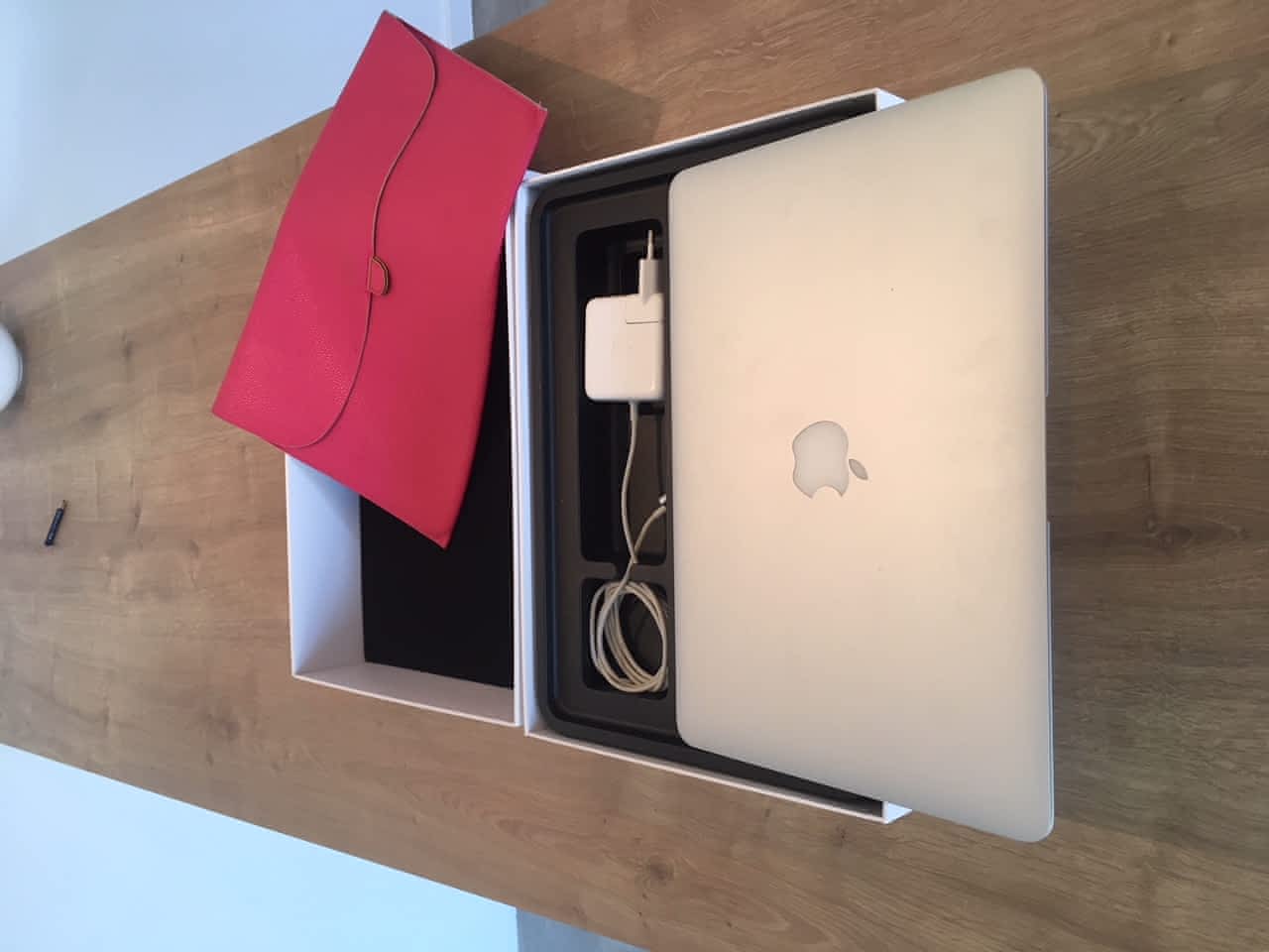 V ceně originální box, napájecí adaptér MagSafe 2, růžové koženkové pouzdro.