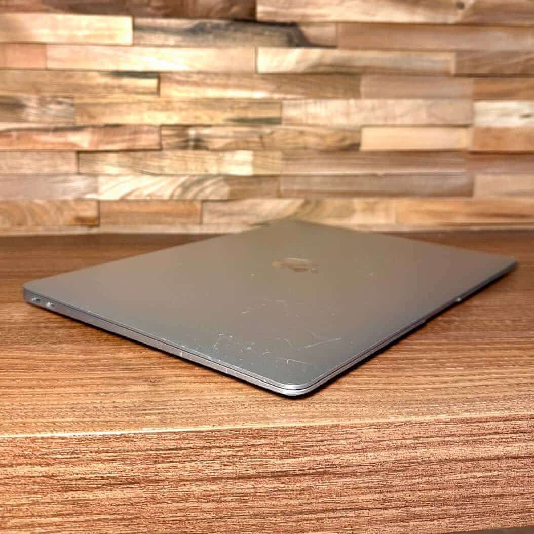 Poškrábané hrany a kryt MacBooku, lehce promáčklý horní kryt na MacBooku