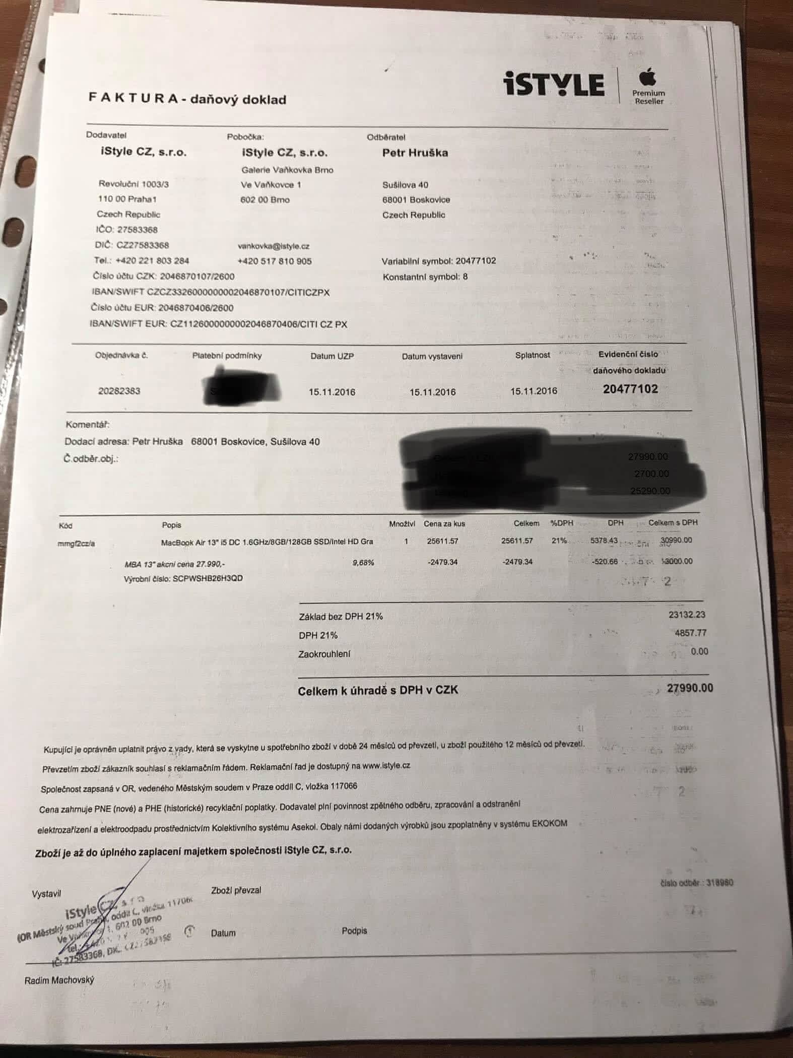 kupovaný v listopadu 2016, ještě v záruce