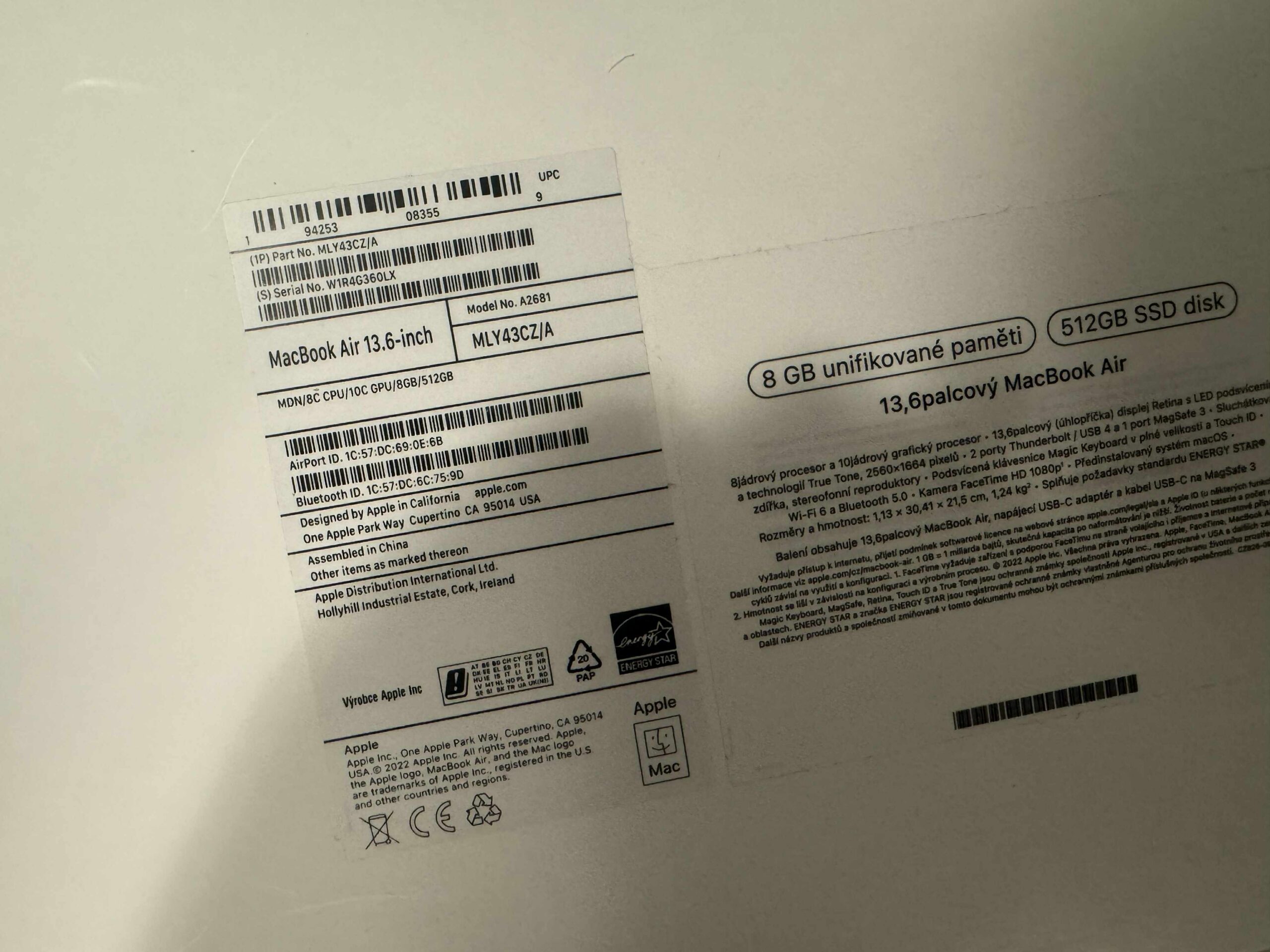 Prodám plně funkční a téměř nepoužívaný Apple Macbook Air 13” M2, 8GB, 512 GB – MLY43CZ/A v barvě temně inkoustová. Česká distribuce a pouze 15 cyklů.
