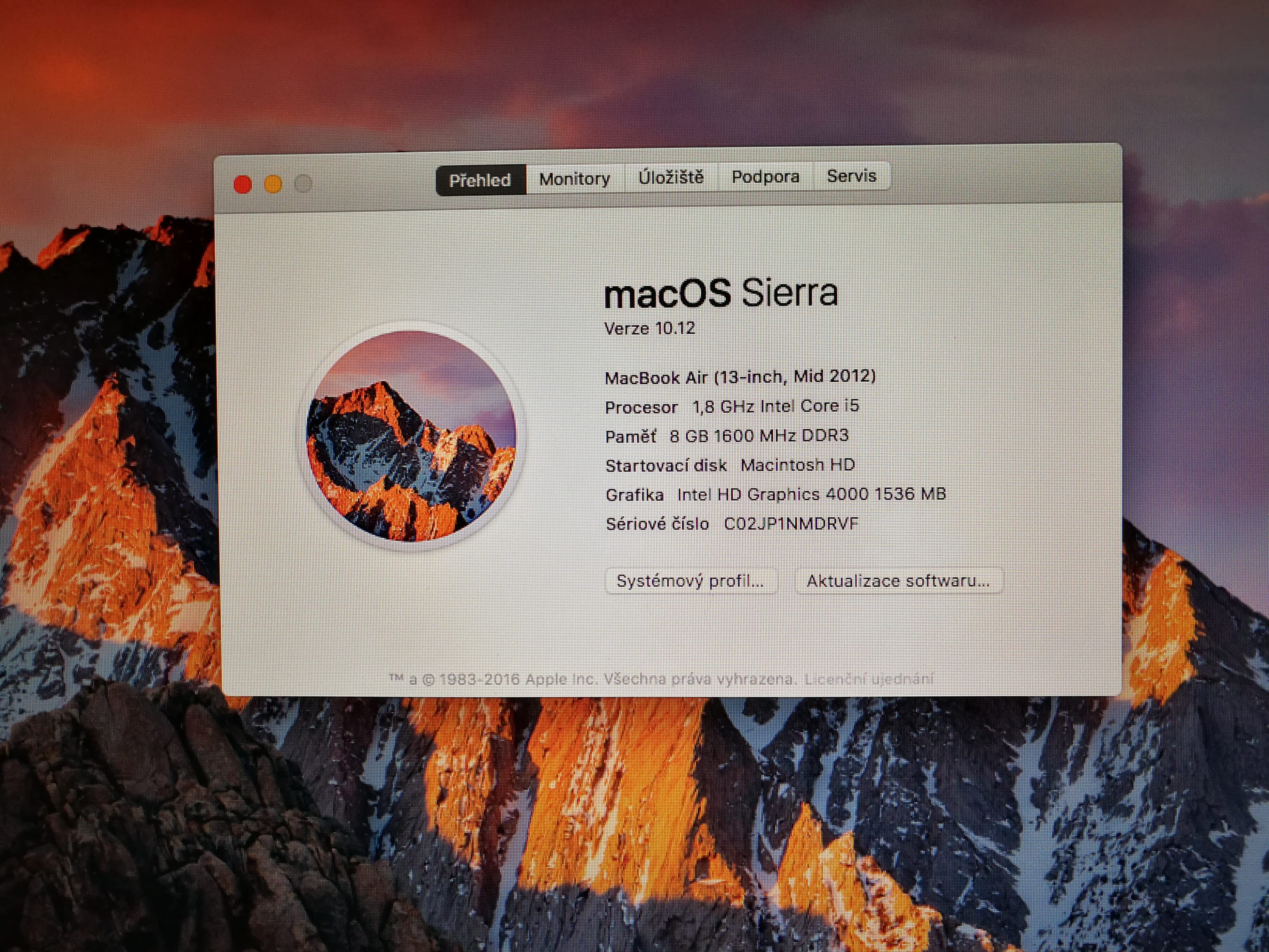 Dobrý den, měl bych na prodej Macbook Air 13 rok 2012 kompletní balení. Stoprocentně funkční bez kosmetických vad akorát jeden roh ťuknutý. Macbook air 13 Mid 2012