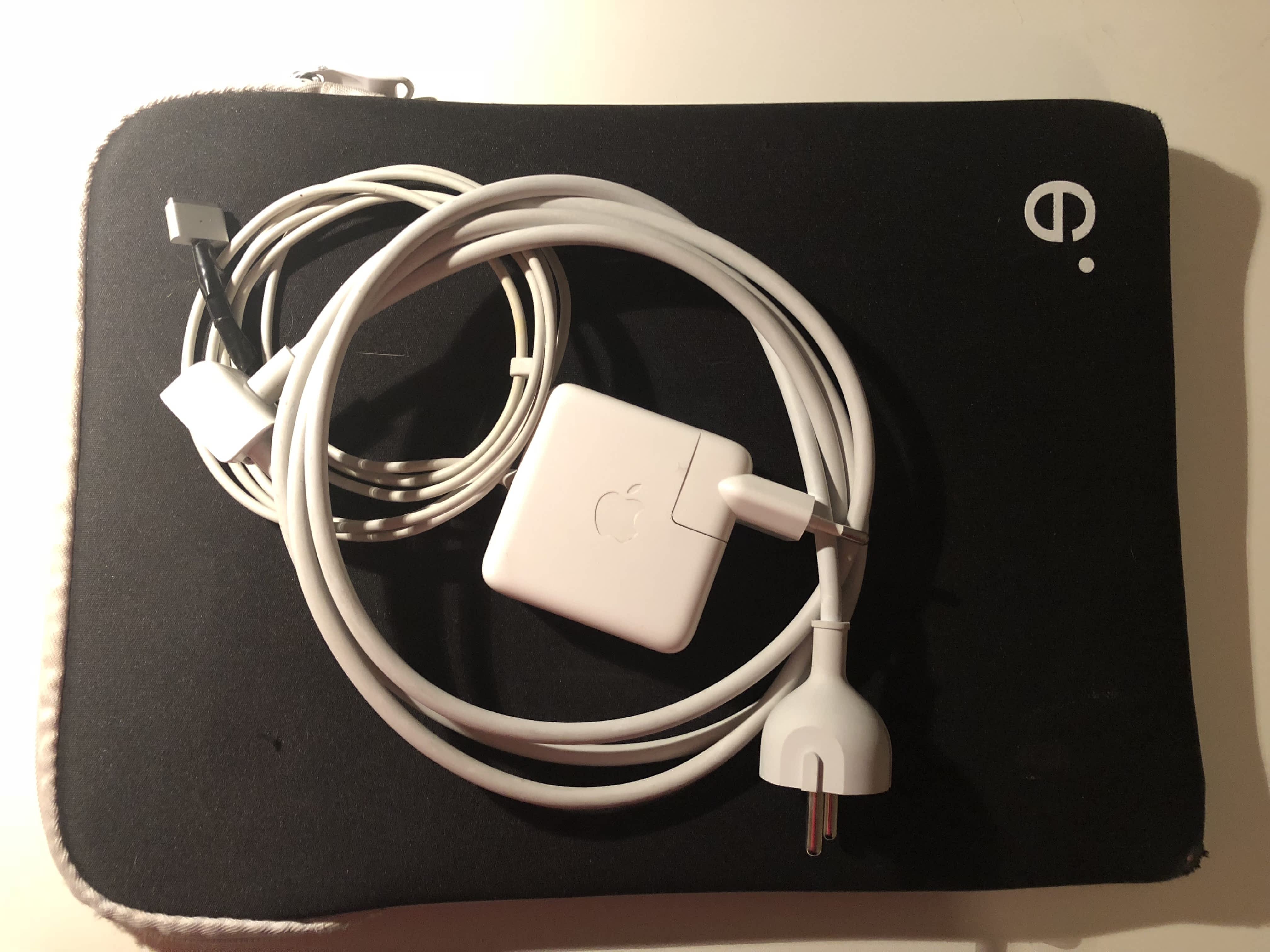Příslušenství: Nabiječka magsafe 2 45W viz. foto, ochranný obal s paměťovou hmotou, původní krabice